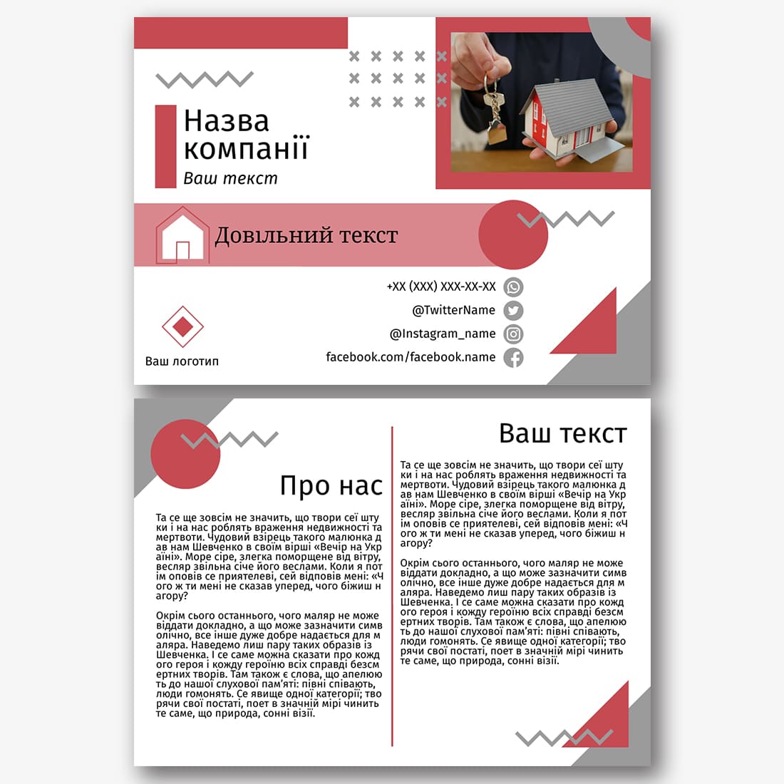 Безкоштовний шаблон листівки для страхової компанії, агентства нерухомості, будівельної компанії. Створіть макет листівки в онлайн-конструкторі листівок.