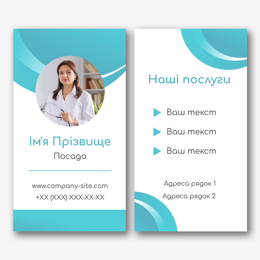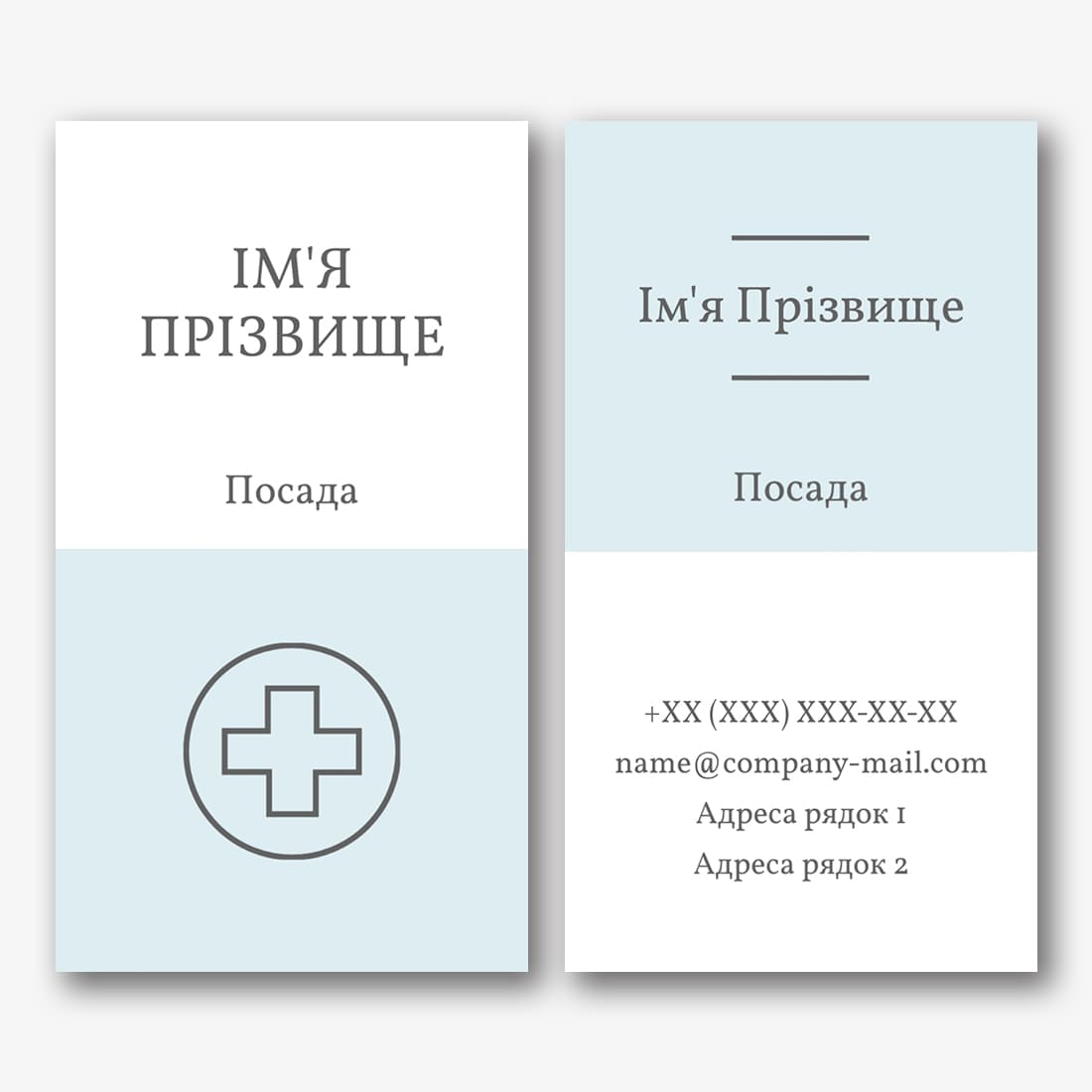 Безкоштовний шаблон візитки лікарні, відділень швидкої допомоги, медичних установ. Створіть макет своїми руками в конструкторі візиток.
