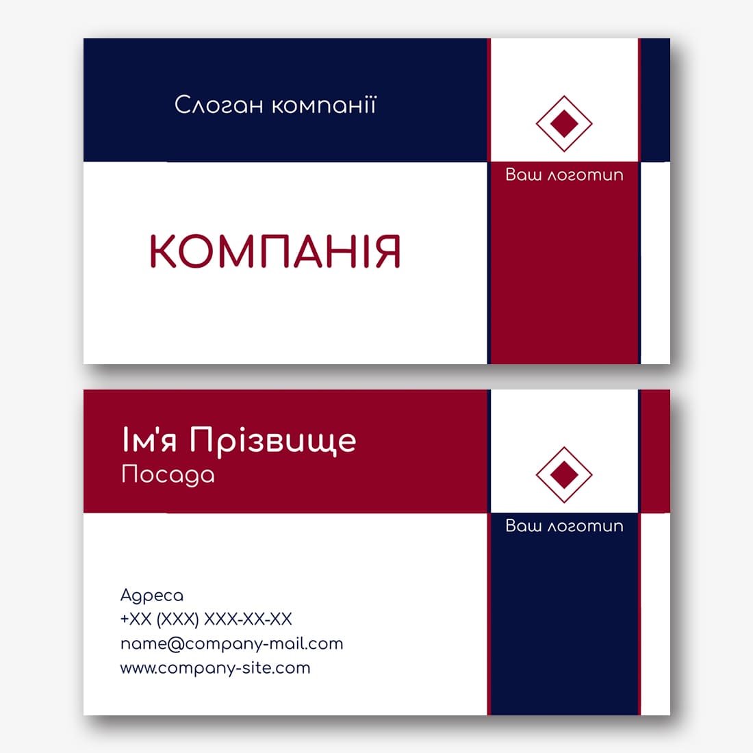Безкоштовний шаблон строгої, лаконічної, класичної, простої візитки. Створіть макет своїми руками в конструкторі візиток.