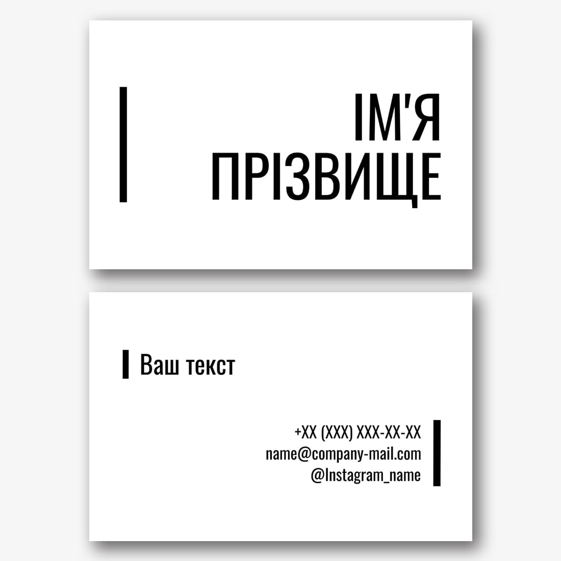 Безкоштовний шаблон строгої, лаконічної, класичної, простої візитки. Створіть макет своїми руками в конструкторі візиток.