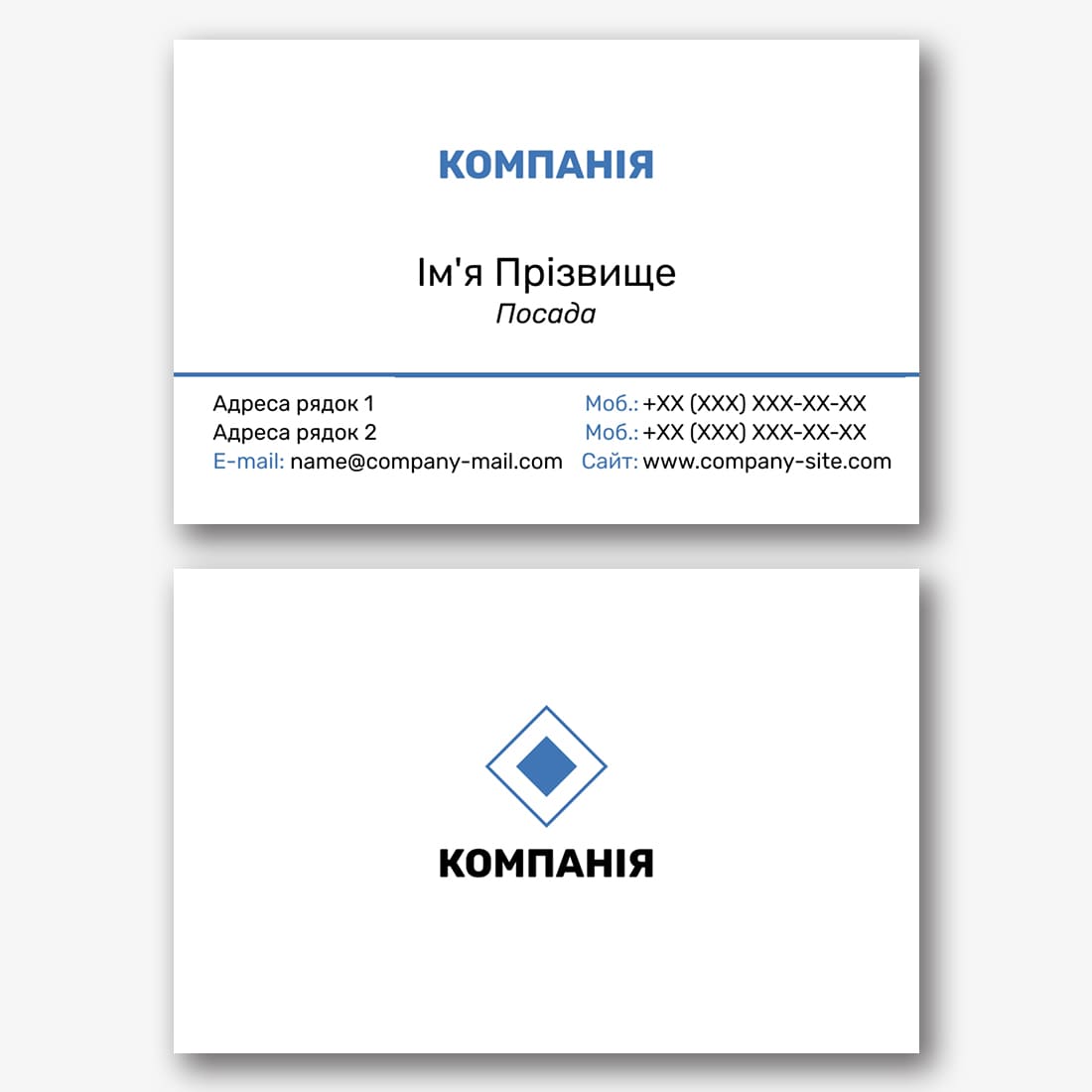 Безкоштовний шаблон корпоративної, простої, класичної візитки. Створіть макет своїми руками в конструкторі візиток.