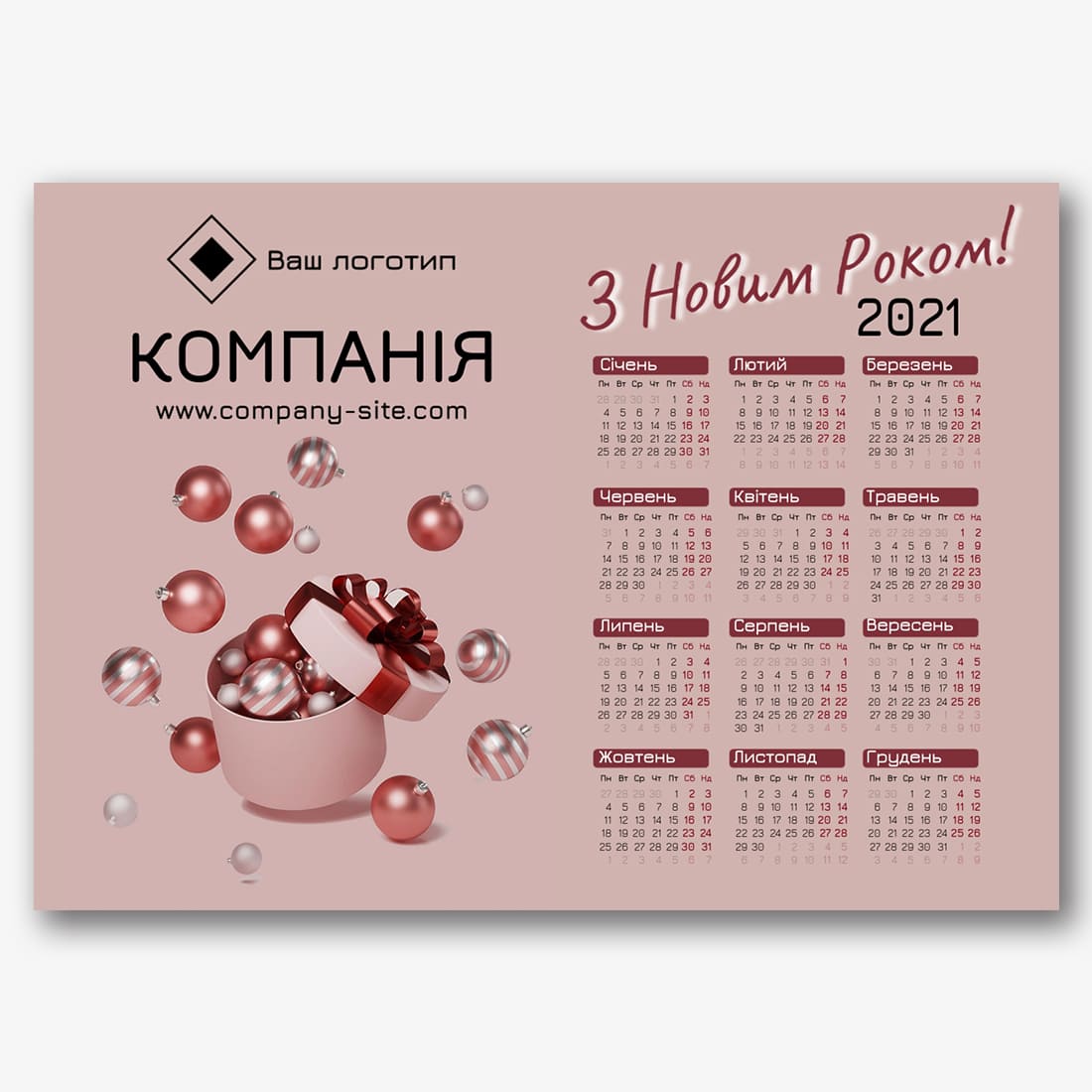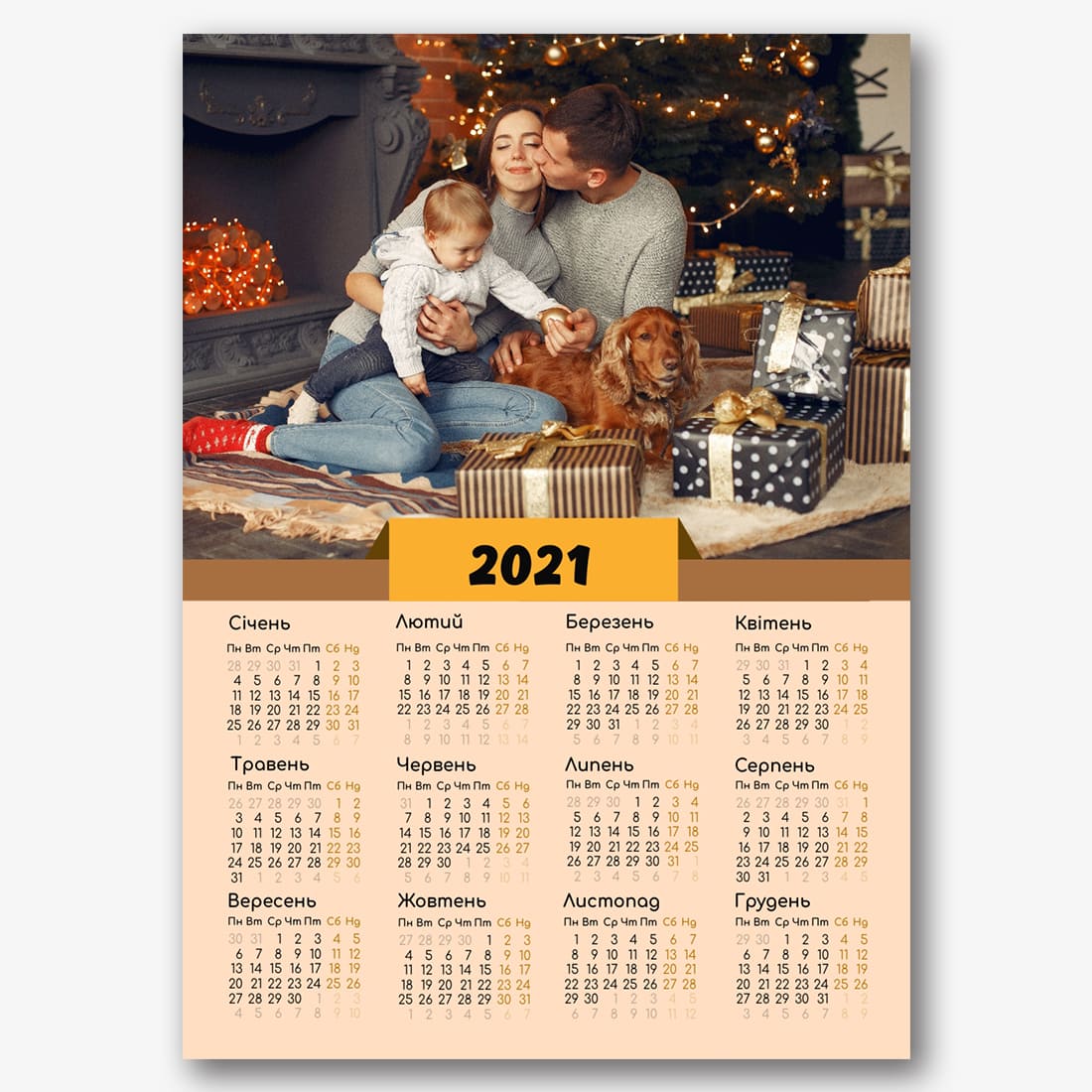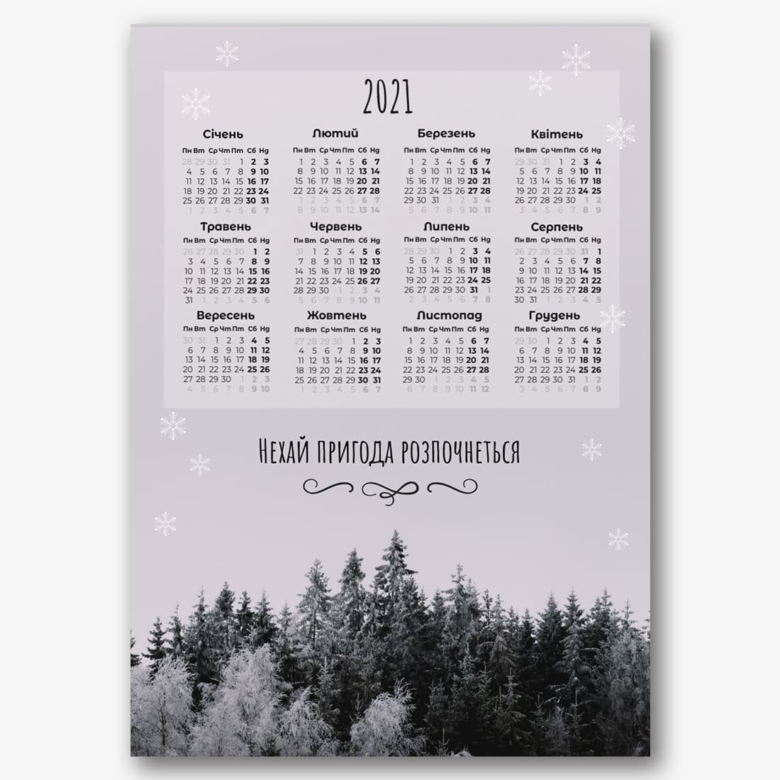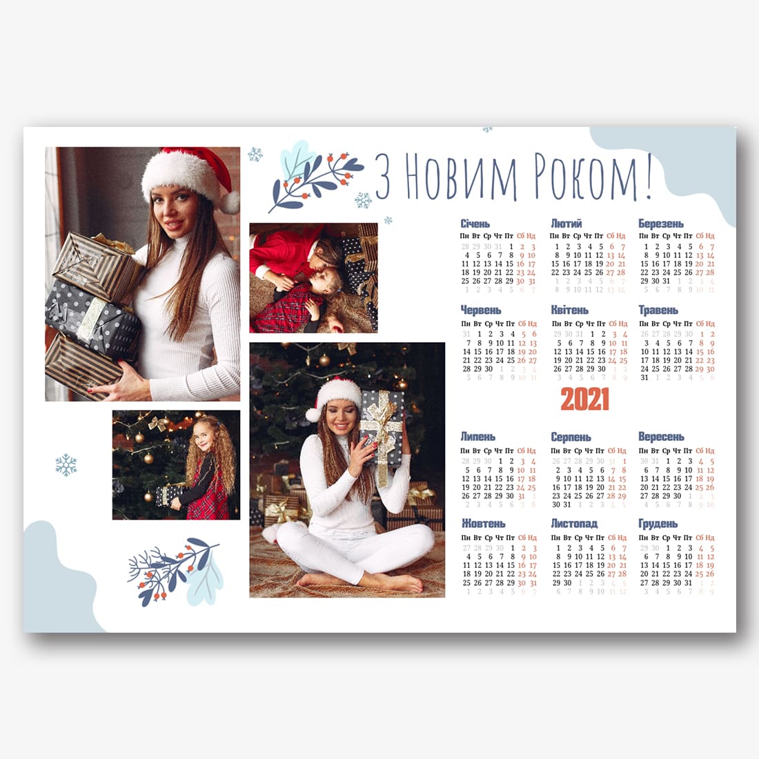Безкоштовний шаблон новорічного календаря-плакату онлайн. Створіть макет своїми руками в онлайн-конструкторі календарів.