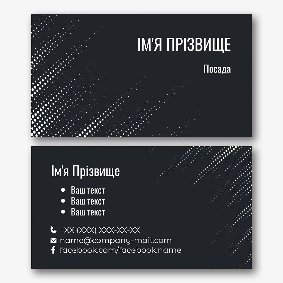 Безкоштовний шаблон абстрактної, корпоративної, стильної, чорної візитки. Створіть макет своїми руками в конструкторі візиток.