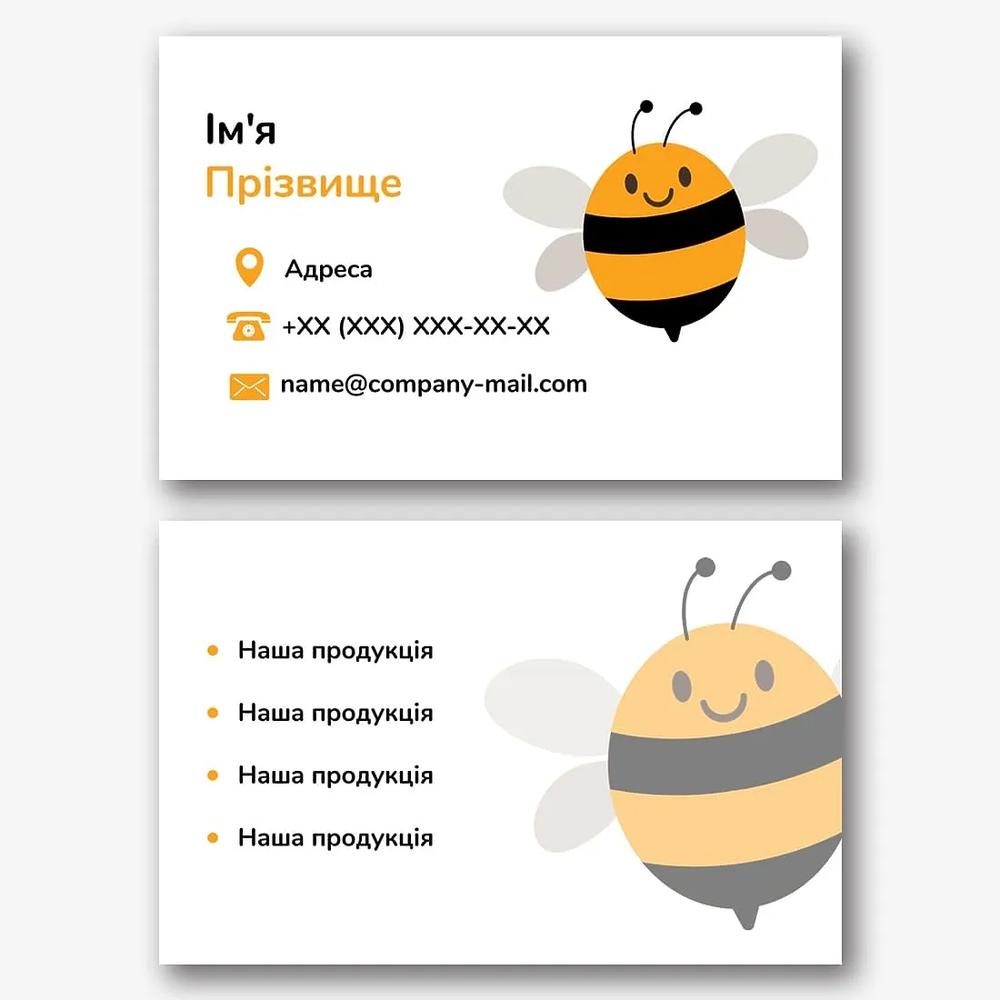 Безкоштовний шаблон візитки для пасіки, пасічників і бджолярів. Створіть макет візитки своїми руками в конструкторі візиток.