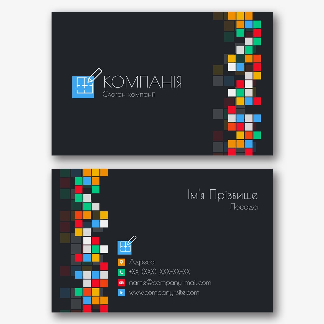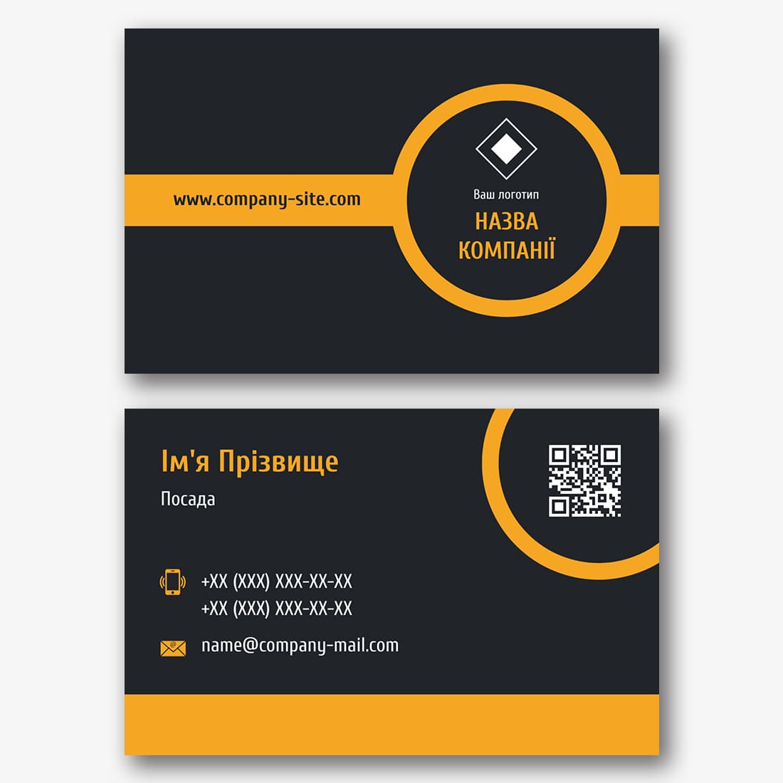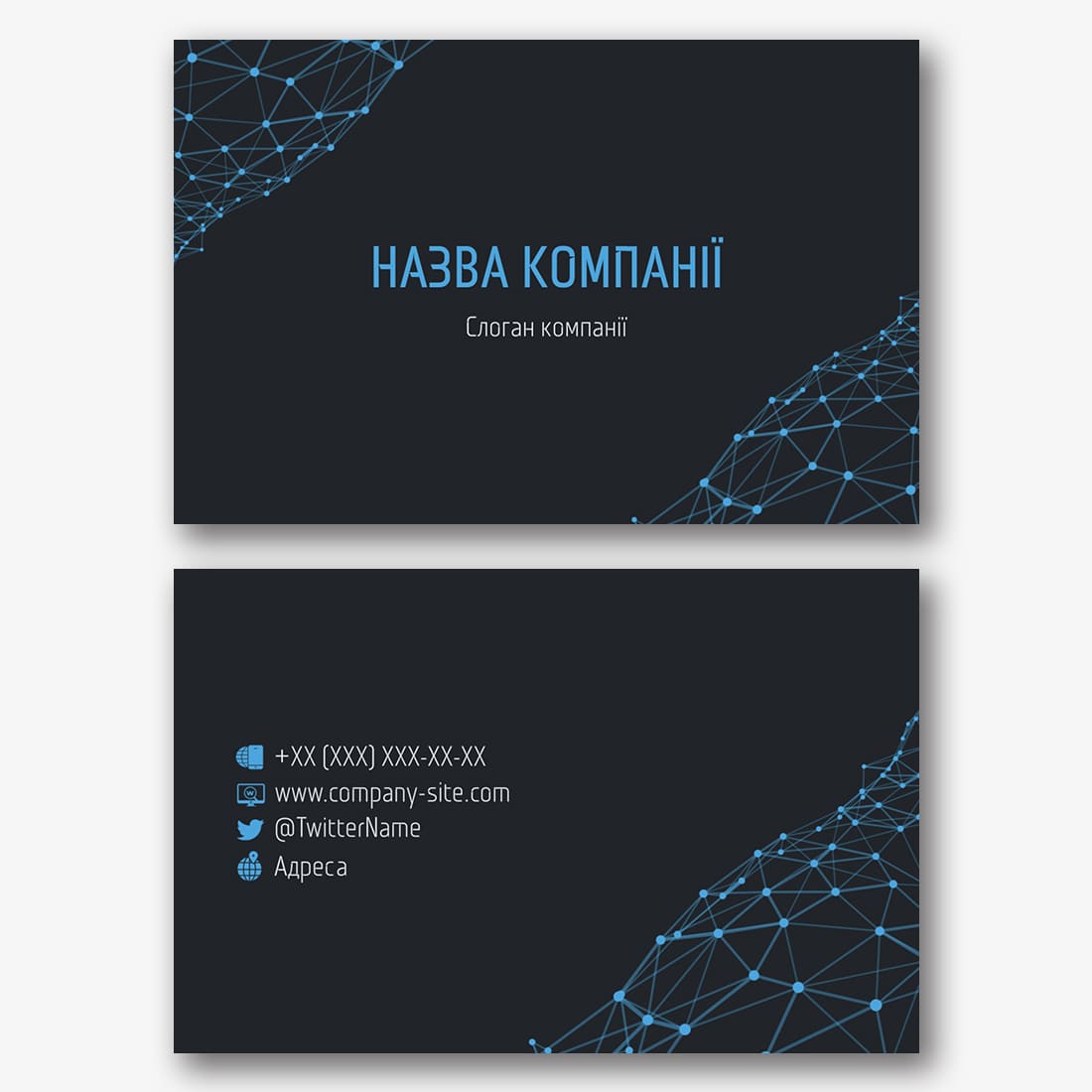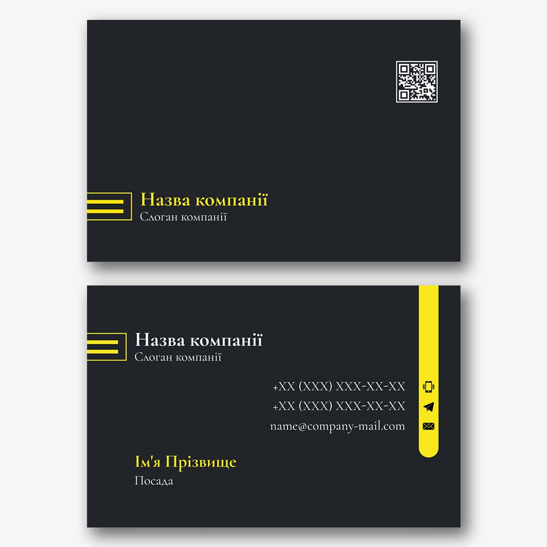 Безкоштовний шаблон абстрактної, корпоративної, стильної, чорної візитки. Створіть макет своїми руками в конструкторі візиток.