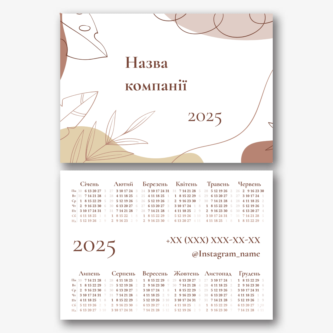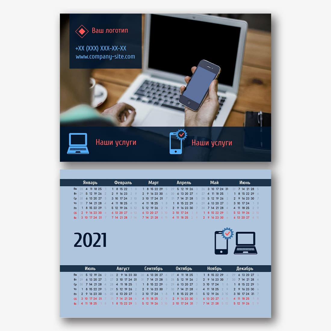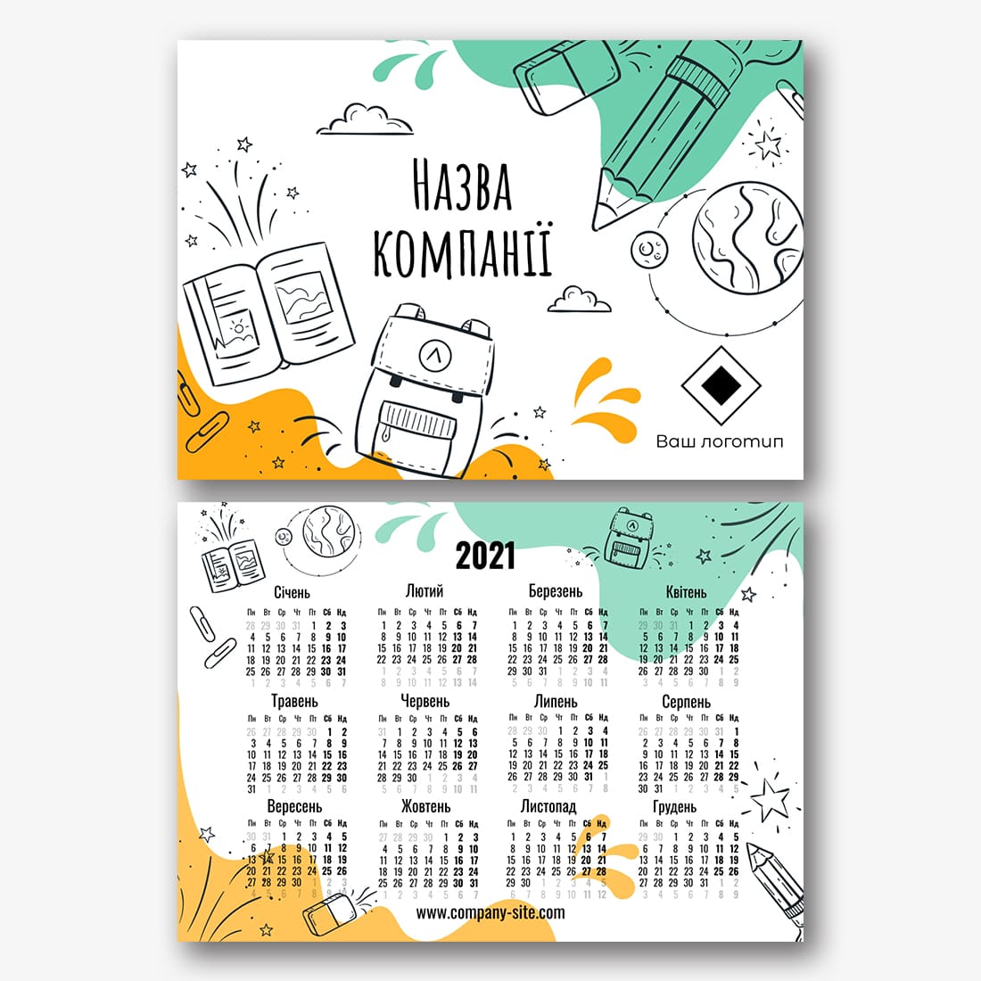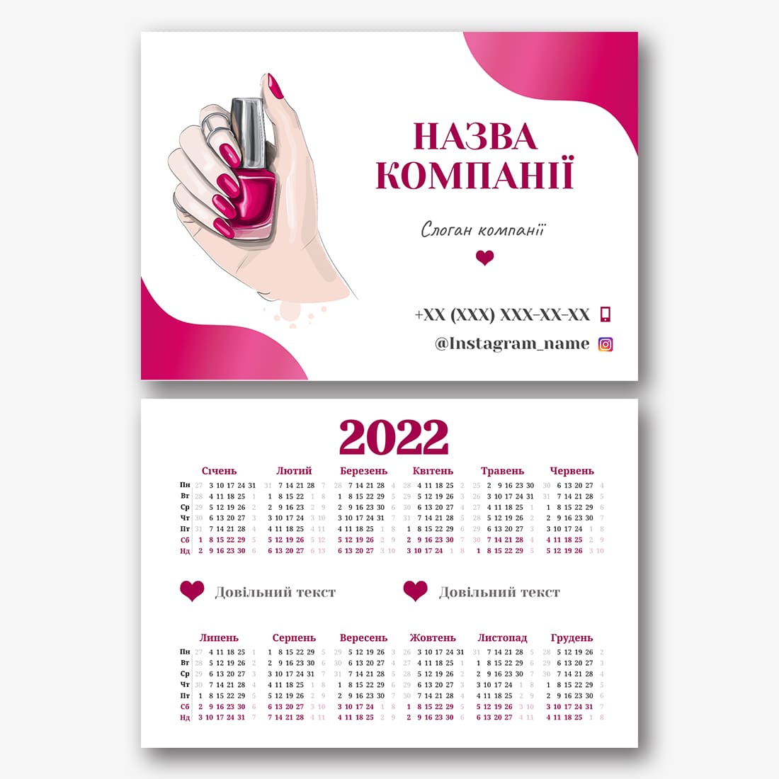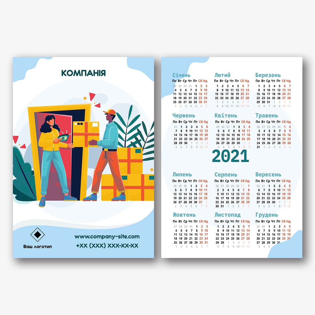 Безкоштовний шаблон кишенькового рекламного календаря вертикальний для реклами ваших послуг. Створіть макет своїми руками в конструкторі календарів.
