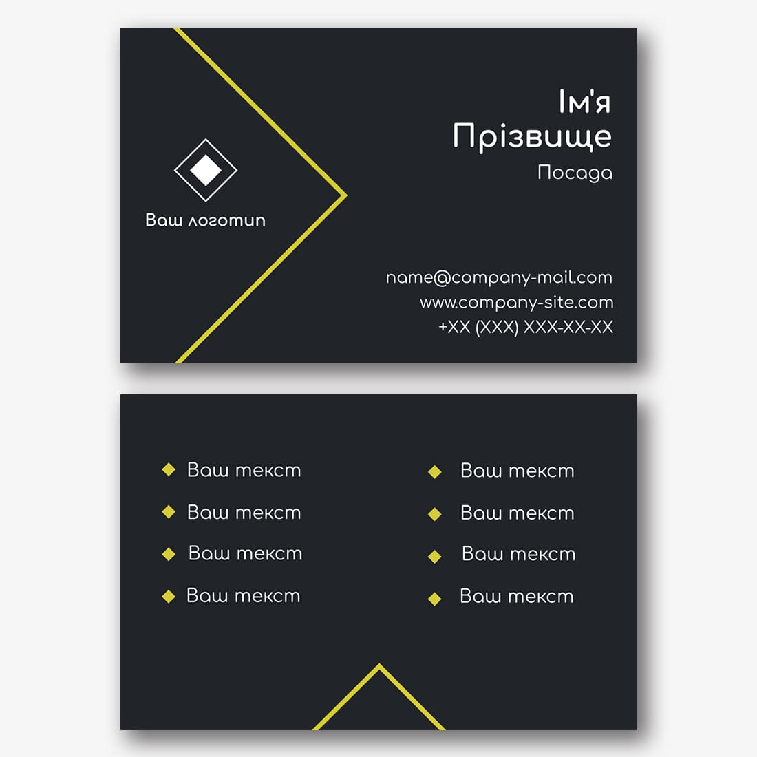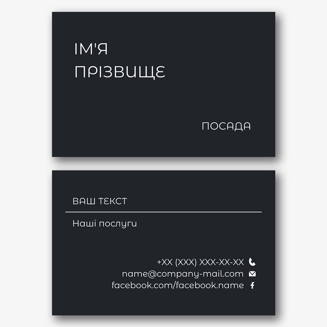 Безкоштовний шаблон строгої, стильної, сучасної, лаконічної, простої візитки. Створіть макет своїми руками в конструкторі візиток.