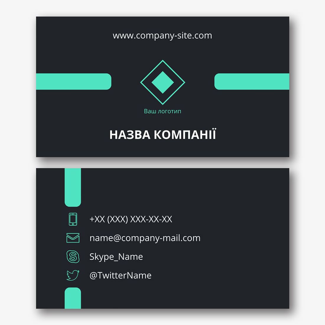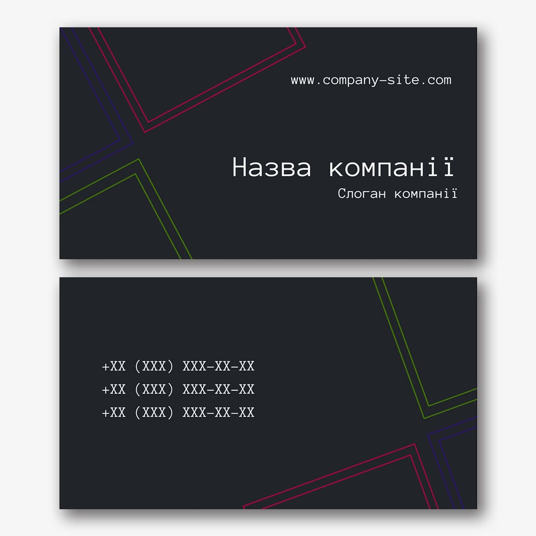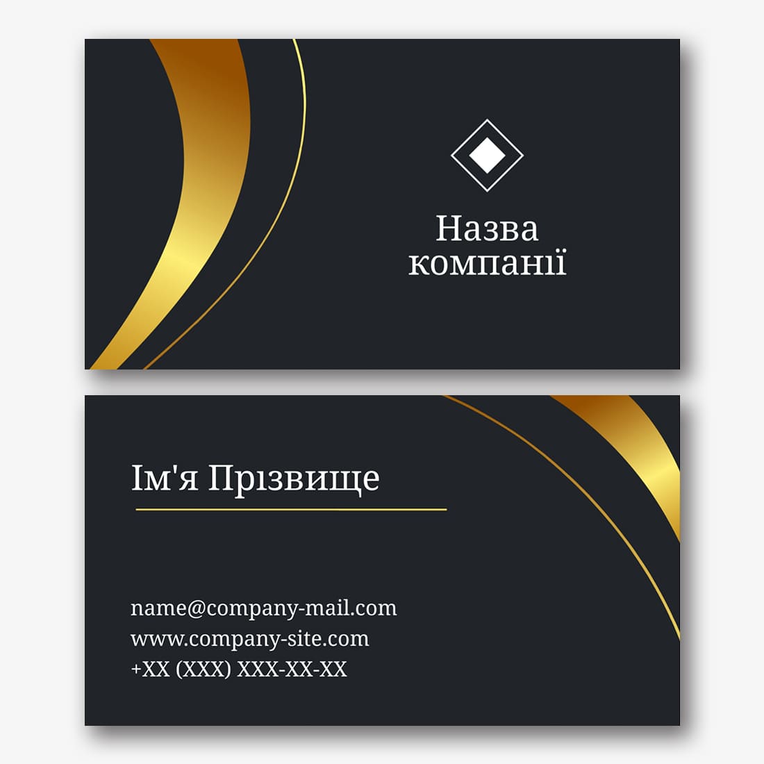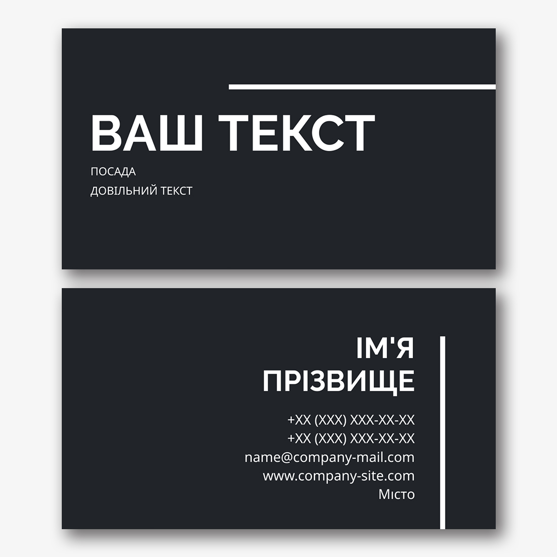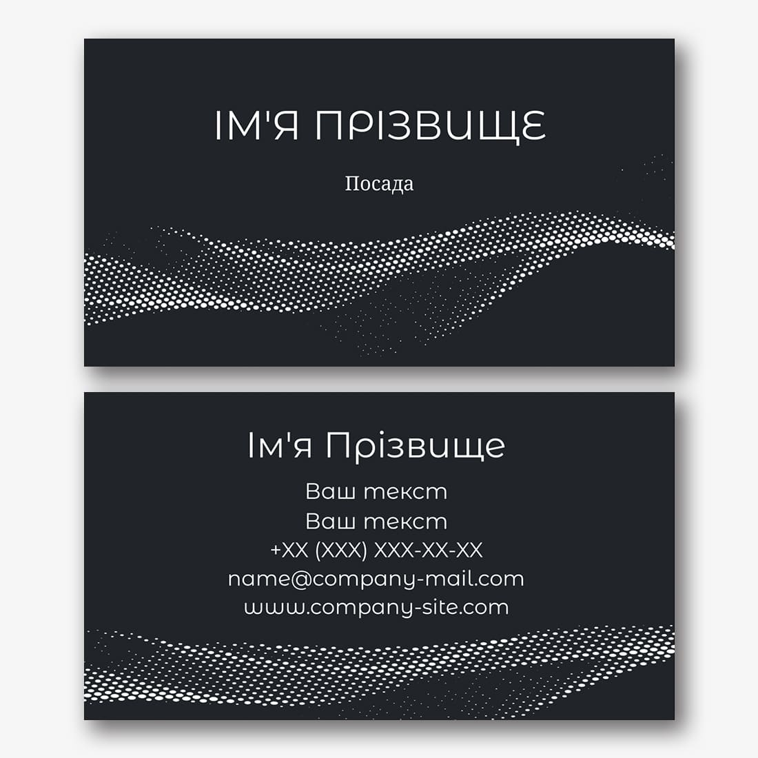 Безкоштовний шаблон чорної, мінімалістичної, сучасної, абстрактної візитки. Створіть макет своїми руками в конструкторі візиток.