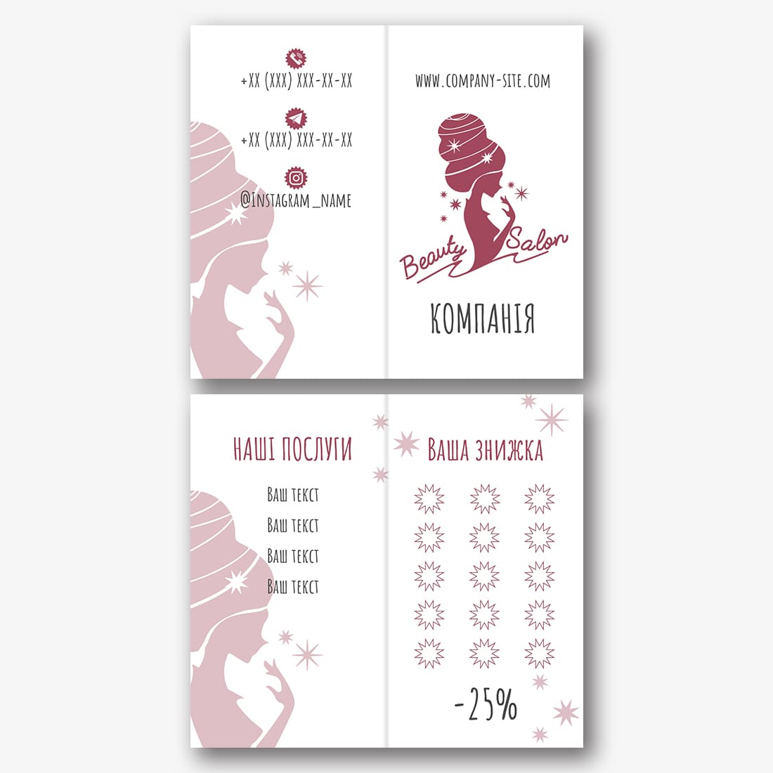 Безкоштовний шаблон подвійної візитки для барбершопа, барбера, перукарні. Створіть макет своїми руками в конструкторі візиток.