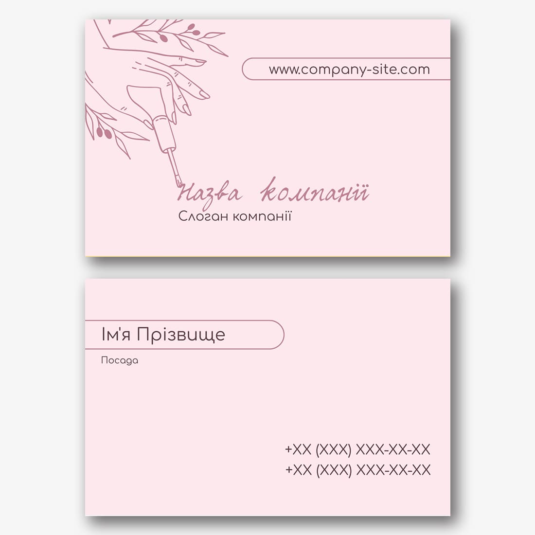 Цей шаблон євровізитки для майстра або студії манікюру оформлений тематично і цікаво, щоб привернути увагу потенційних клієнтів та передати атмосферу краси та догляду за руками. Ви можете використовувати цей шаблон у нашому онлайн-конструкторі, додавши свій логотип, ім'я або назву студії, а також вашу посаду (майстер манікюру) та контактні дані, такі як номер телефону, адреса електронної пошти та адреса студії, якщо є. Це допоможе персоналізувати шаблон під вас. Даний готовий шаблон євровізитки дозволяє створити унікальну візитку, яка відображає ваш стиль та професіоналізм у сфері манікюру. Використовуйте його в нашому онлайн-конструкторі, налаштовуйте деталі під свої потреби і створіть свою власну візитку для успішного просування вашого бізнесу.