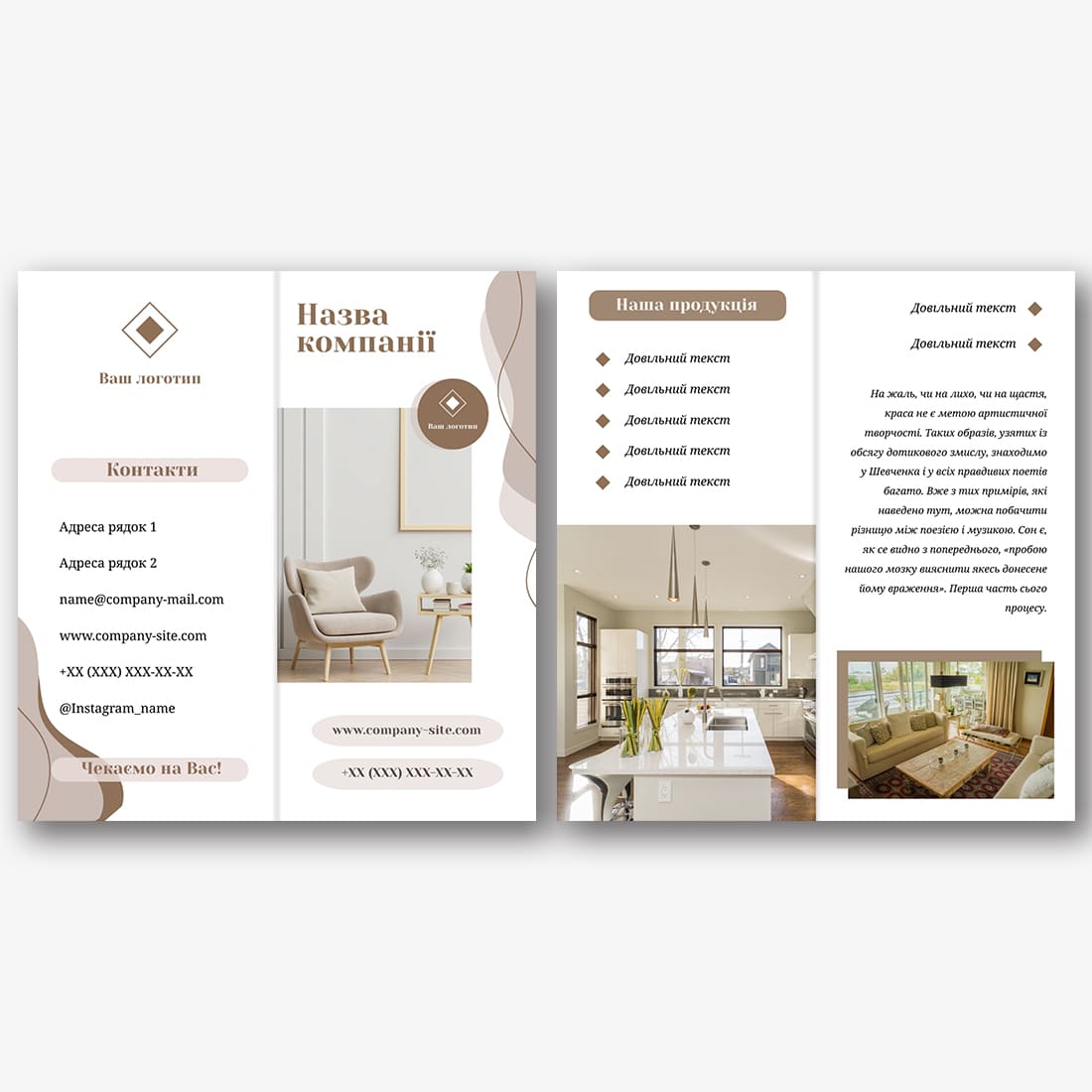 Безкоштовний шаблон іміджевого буклета онлайн мережі готелів. Створіть макет буклета своїми руками в онлайн-конструкторі буклетів.