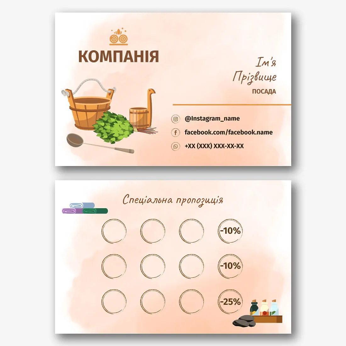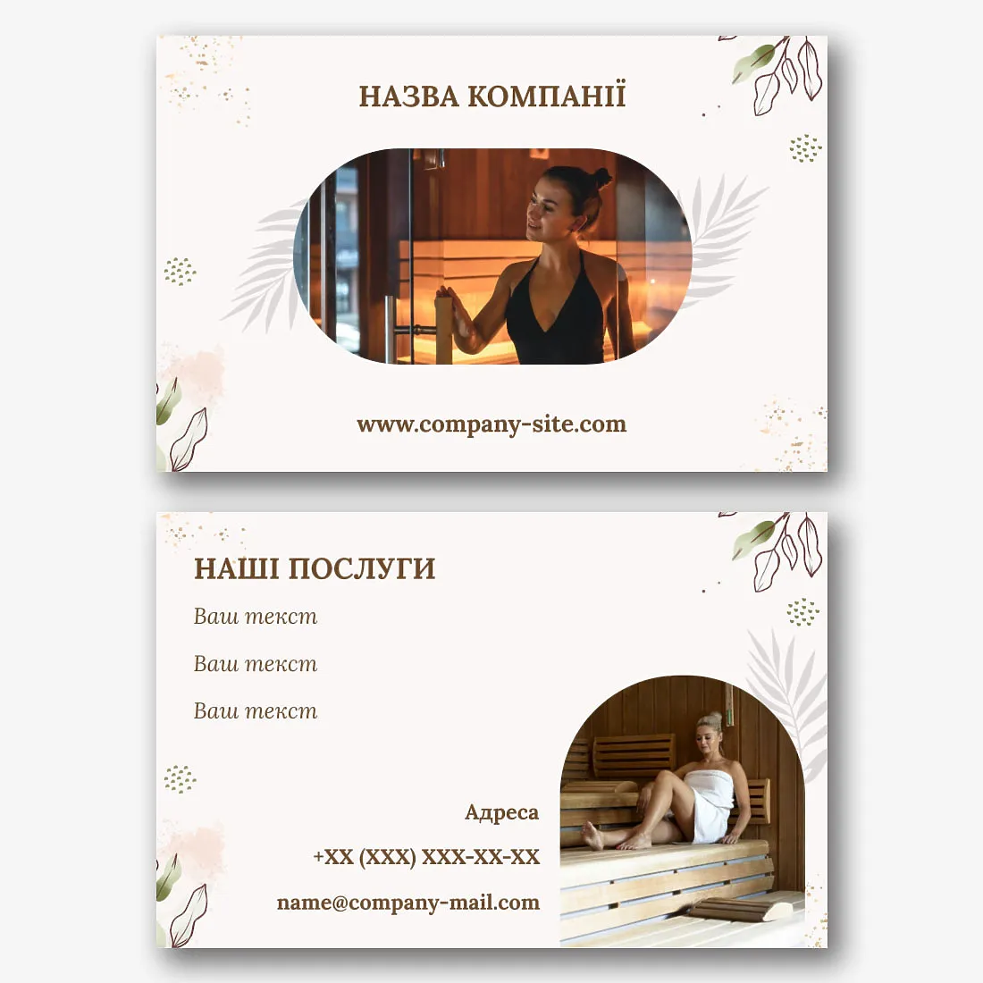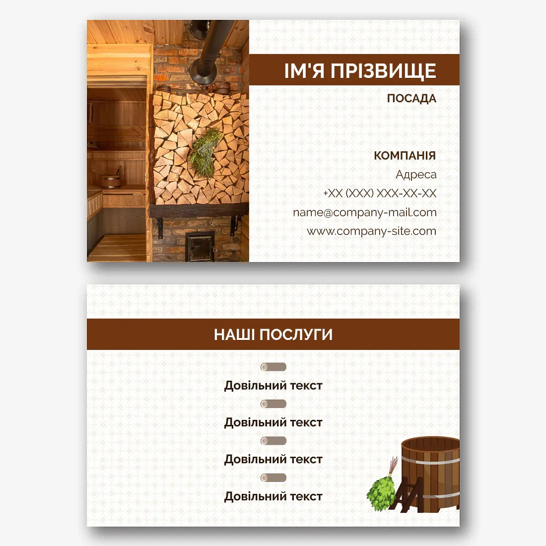 сауна лазня банний комплекс банщик відпочинок релакс Євровізитка Дизайн Онлайн-конструктор Елегантність Практичність Професіоналізм Корпоративний стиль