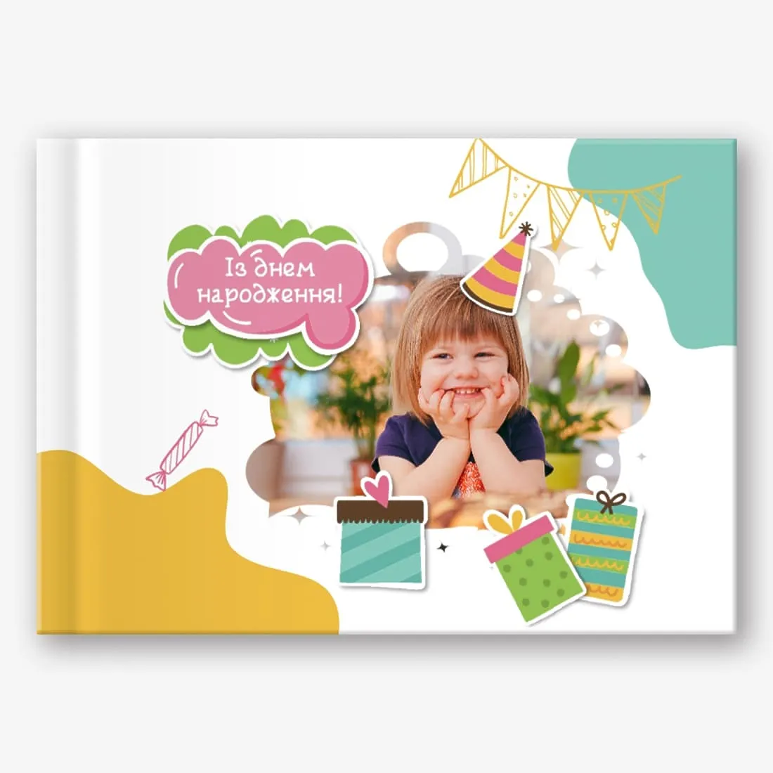 Безкоштовний шаблон дитячої фотокниги для новонародженого хлопчика. Створіть макет власноруч в онлайн-конструкторі фотокниг.