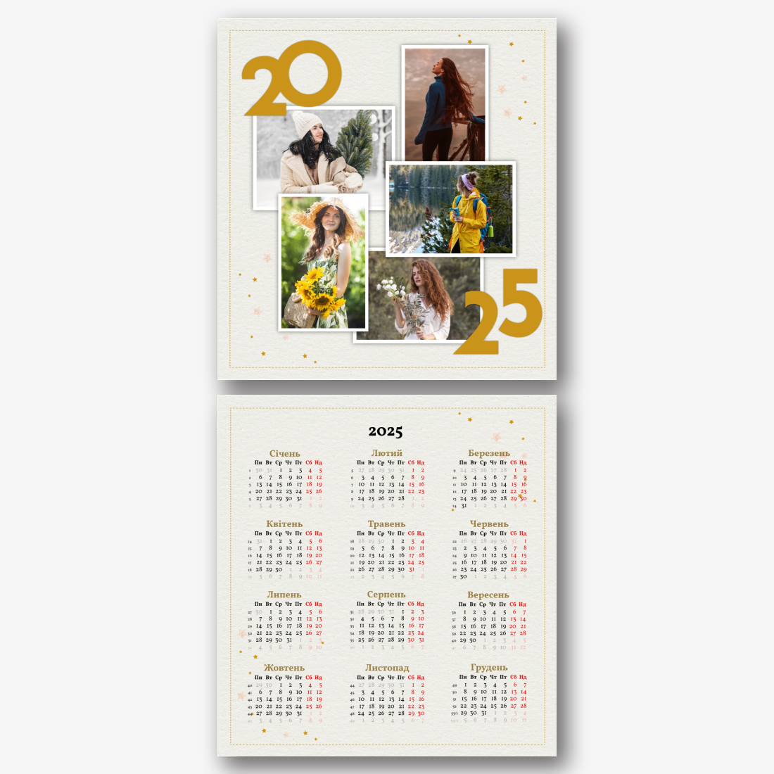 Безкоштовний шаблон настінного сімейного календаря онлайн для пам'ятних моментів. Створіть макет своїми руками в онлайн-конструкторі календарів.