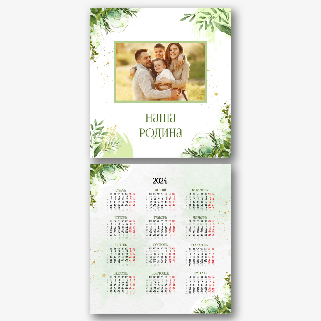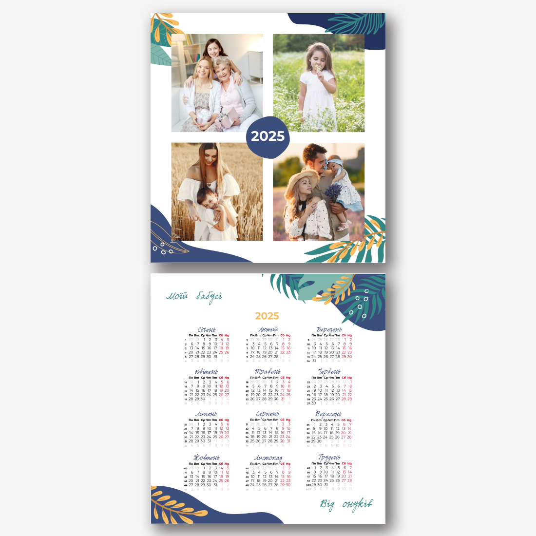Безкоштовний шаблон настінного сімейного календаря онлайн для пам'ятних моментів. Створіть макет своїми руками в онлайн-конструкторі календарів.