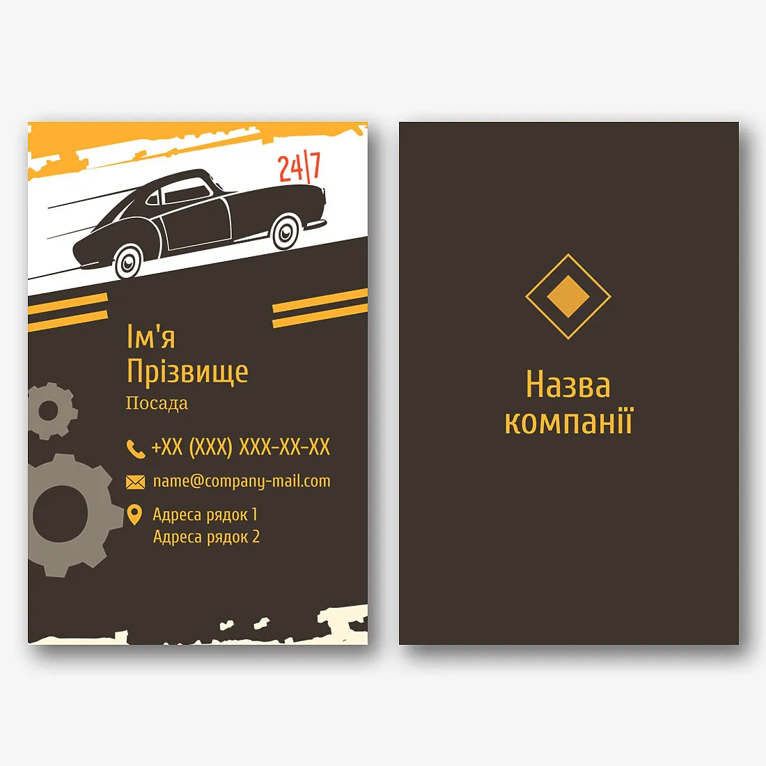 Безкоштовний шаблон візитки шиномонтажу, автосервісу. Створіть макет своїми руками у конструкторі візиток.