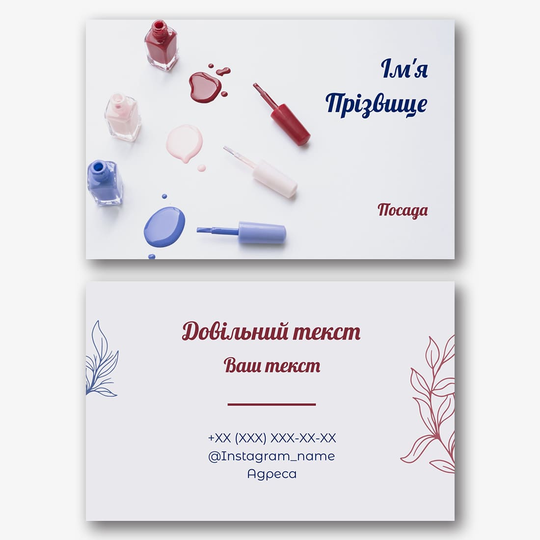Готовий шаблон євровізитки для перукаря ідеально підходить для професіоналів б'юті-індустрії. За допомогою онлайн-конструктора ви можете легко налаштувати шрифти, кольори, додати логотипи та контакти, створюючи унікальну візитку своїми руками