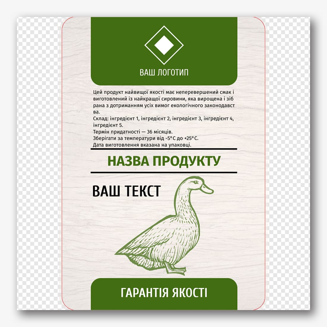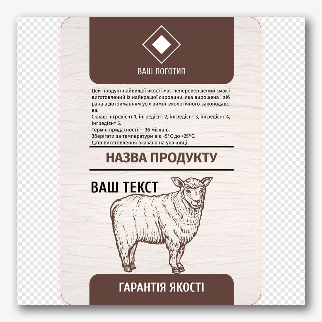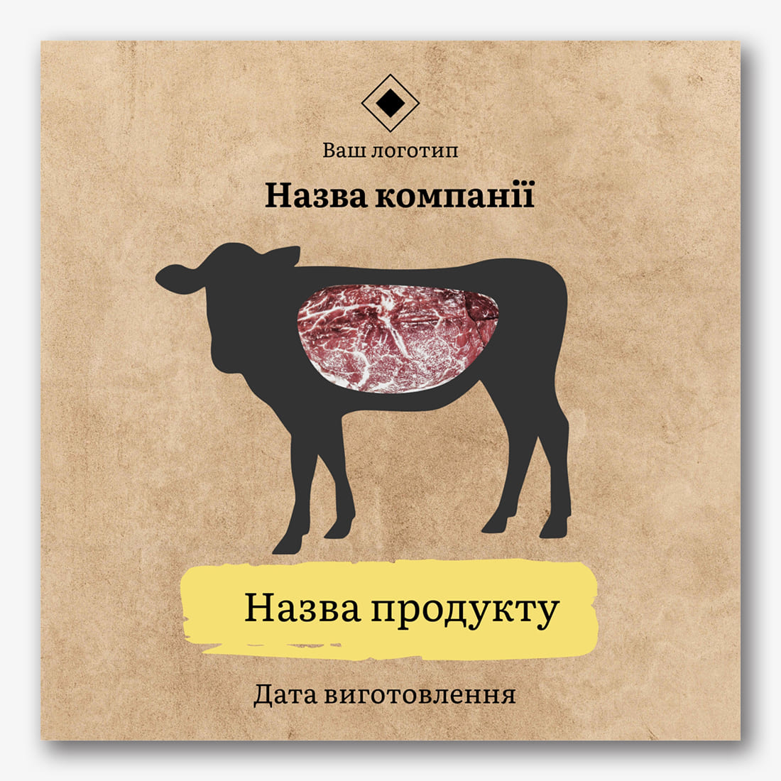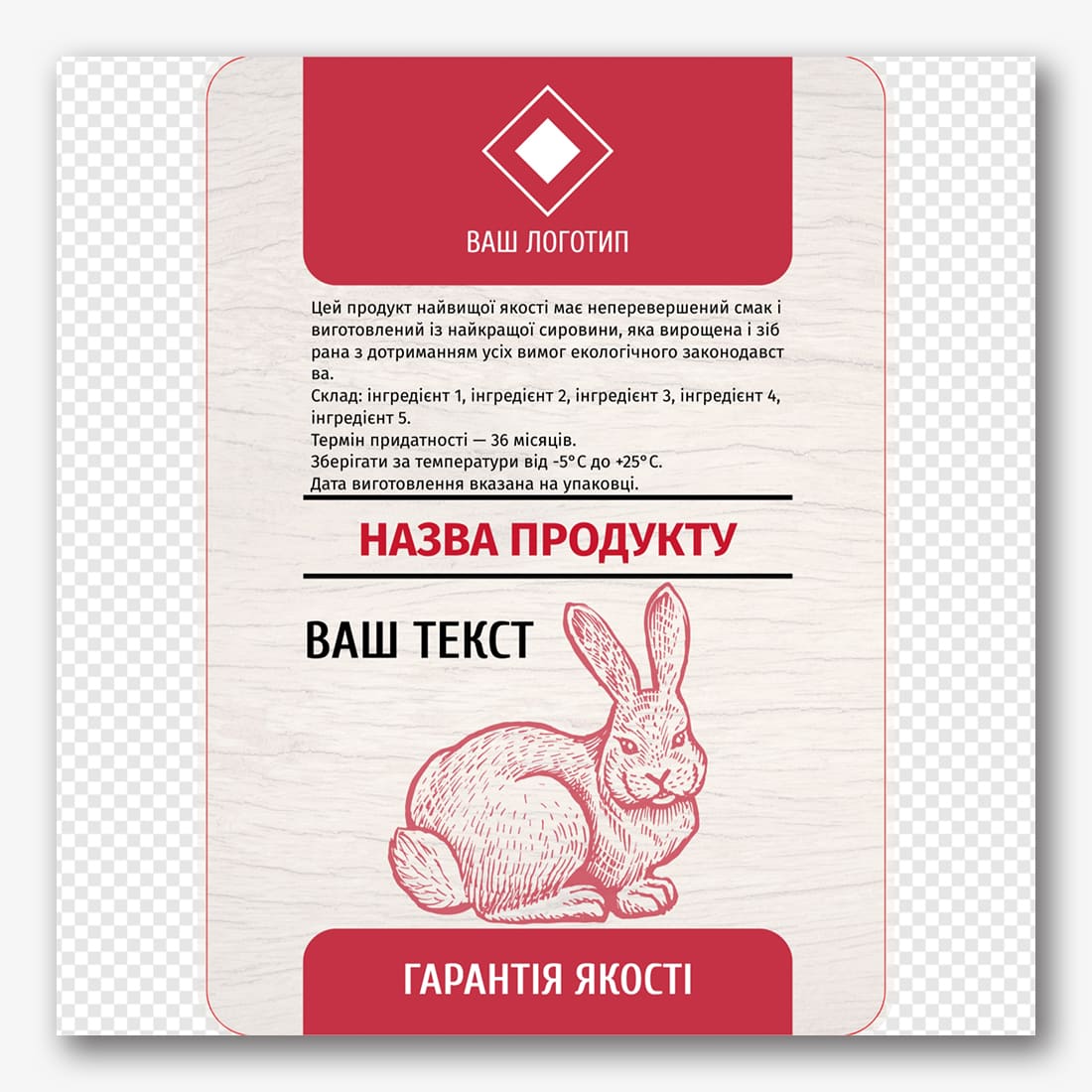 Безкоштовний шаблон рекламної етикетки онлайн для виробників та виготовлювачів м'ясних консервів. Створіть макет своїми руками в онлайн-конструкторі етикеток.