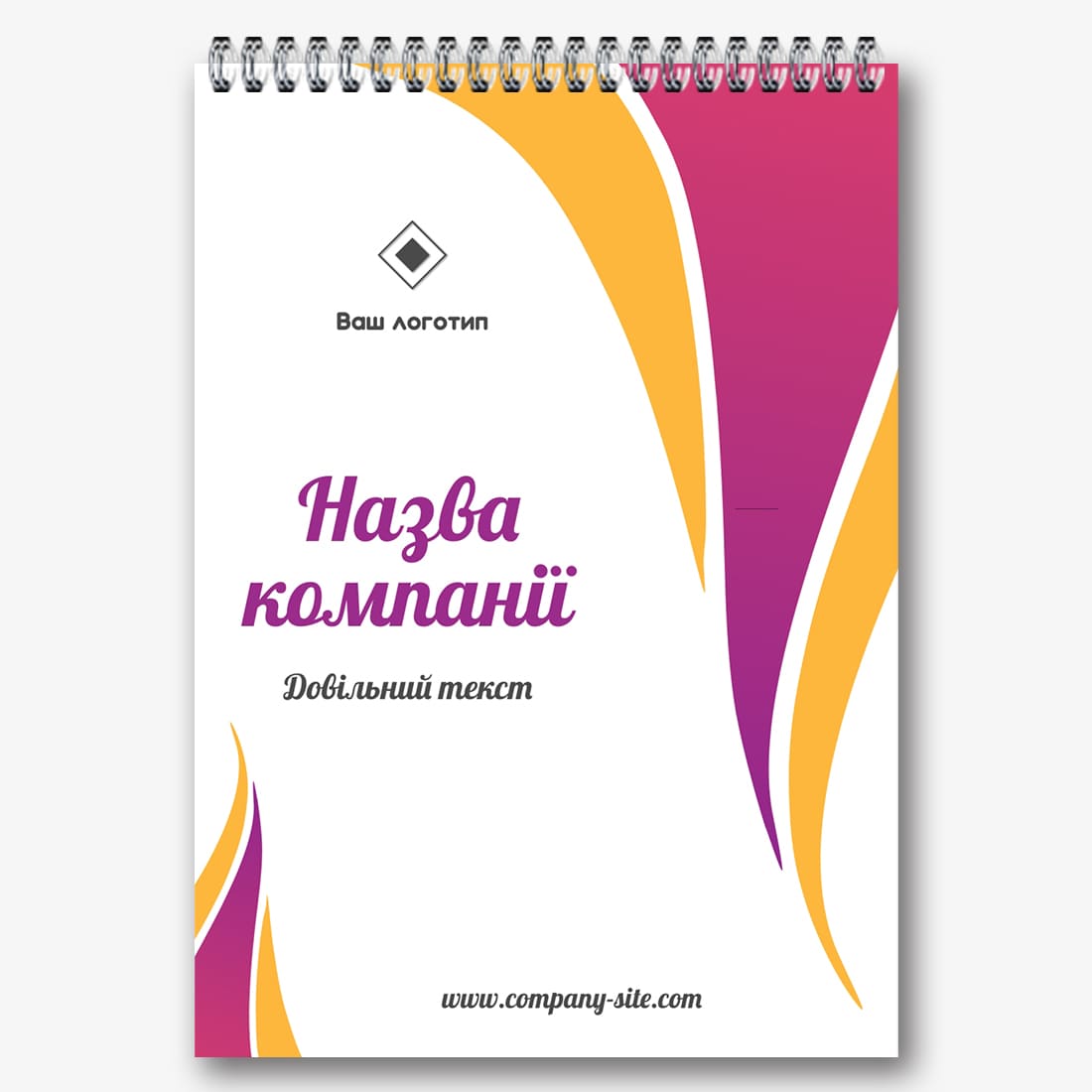 Шаблон красивого блокнота дозволяє створити стильний і персоналізований канцелярський аксесуар. Легко редагуйте кольори, текст та зображення в онлайн-конструкторі для унікального дизайну.
