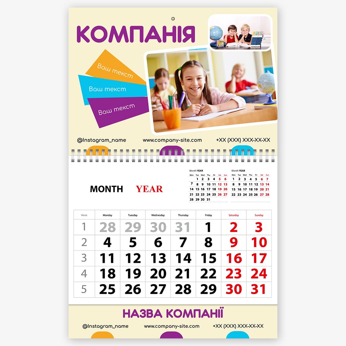 Шаблон квартального календаря для заводу – ідеальне рішення для реклами та просування вашого бізнесу. Легко налаштуйте календар у нашому онлайн-конструкторі та створіть унікальний дизайн.