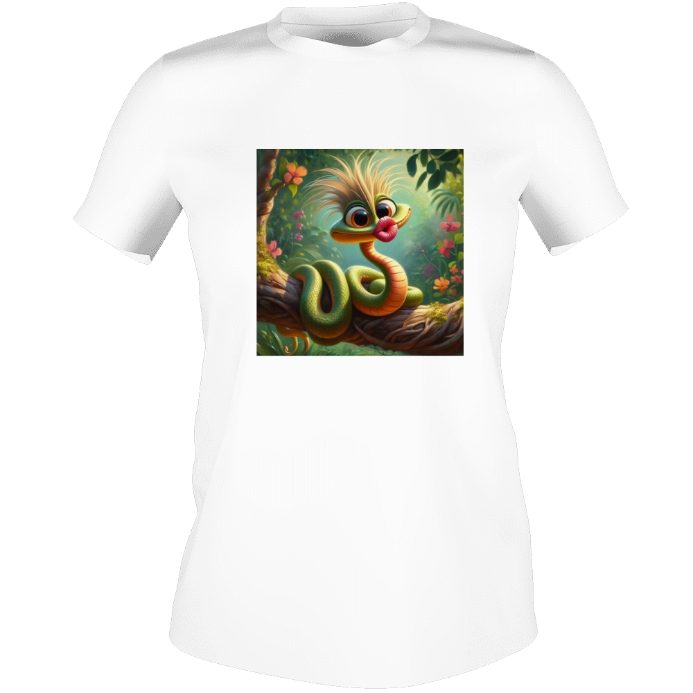 Створіть унікальну новорічну футболку з принтом зеленої змії 2025 року серед ялинкових прикрас. Ідеальний варіант для святкового подарунка.