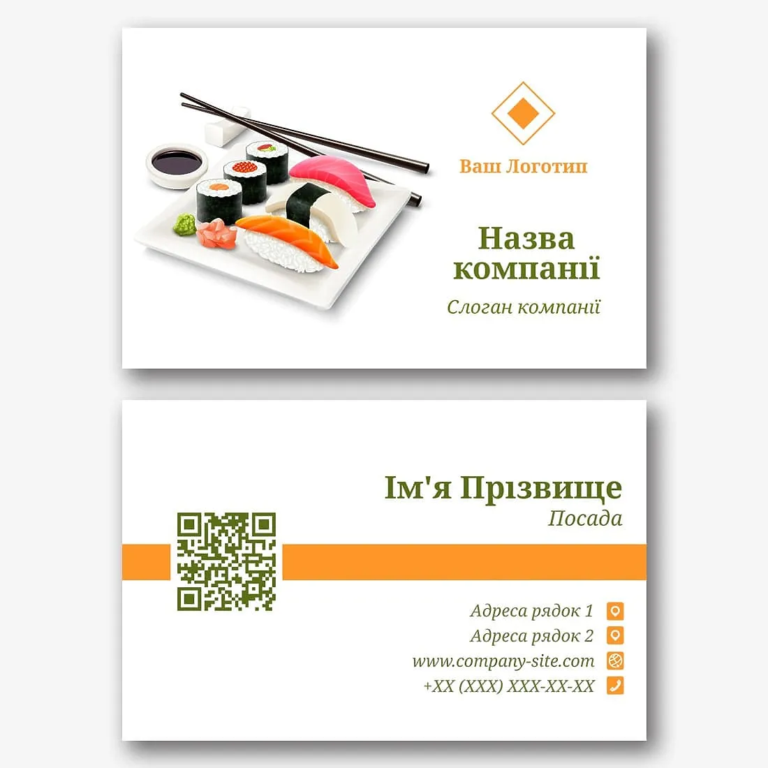 Безкоштовний шаблон візитки для ресторану японської кухні, суші-бару, суші та сушистів. Створіть макет своїми руками у конструкторі візиток.