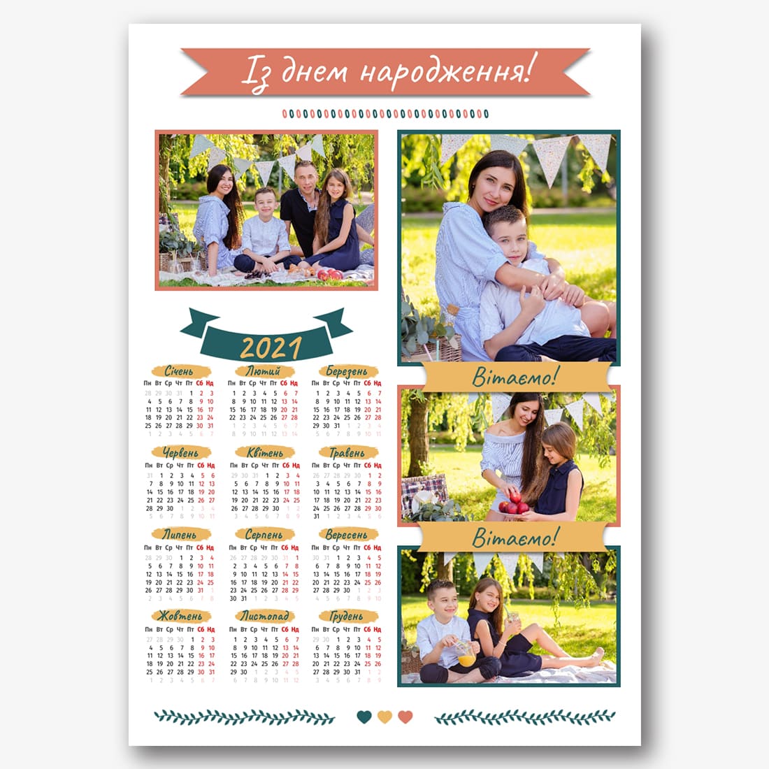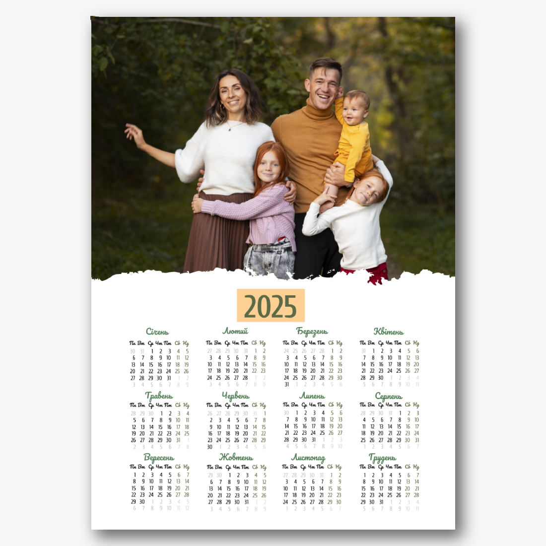 Шаблон календаря "Наша сім'я" допоможе створити пам'ятний сімейний календар. Налаштуйте фото, шрифти та стиль у зручному онлайн-конструкторі за кілька хвилин.