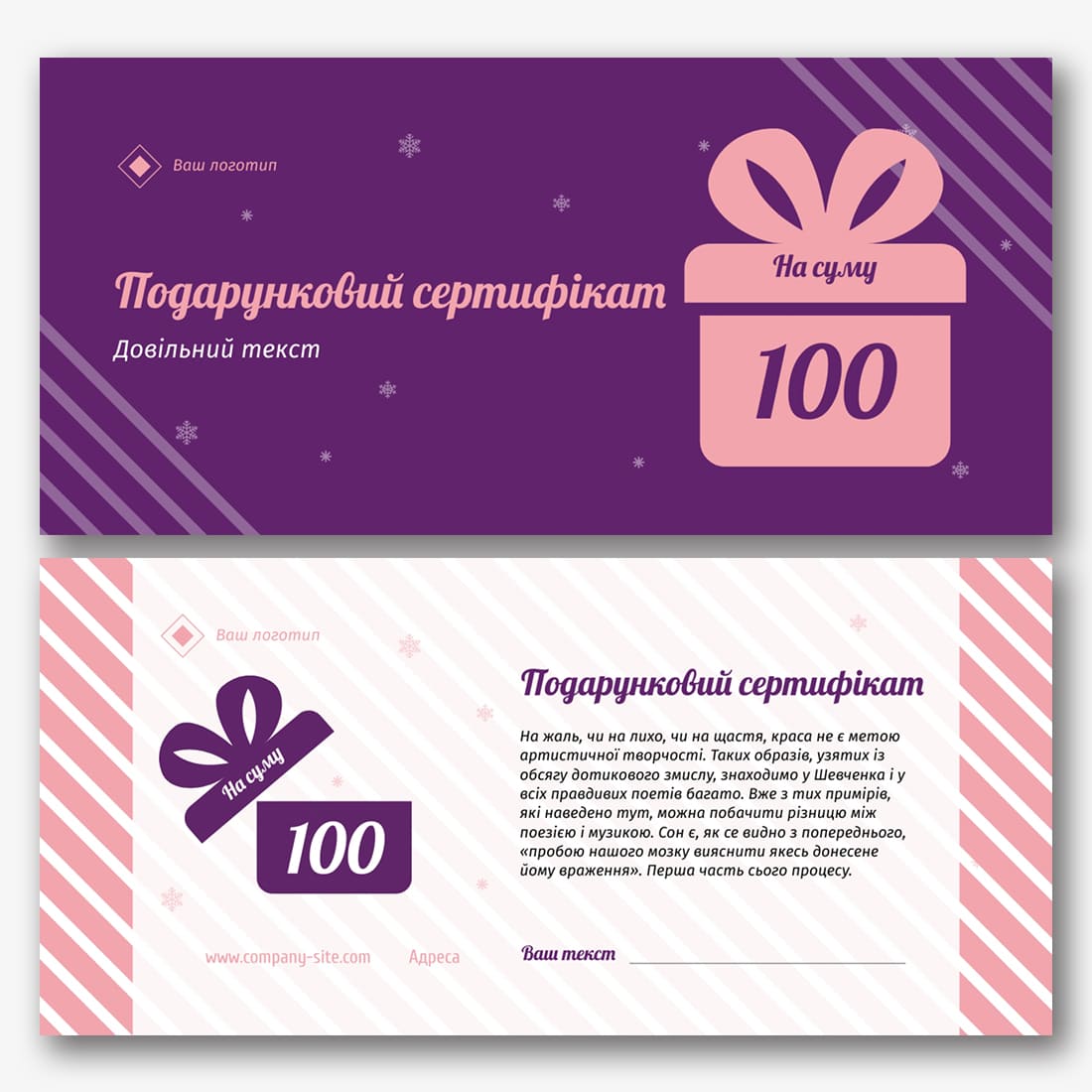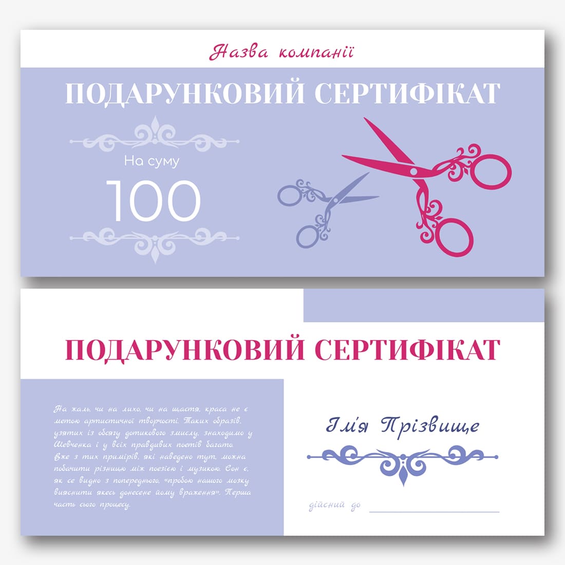 Безкоштовний шаблон подарункового сертифікату для реклами ваших послуг, товарів, акційних пропозицій. Створюйте макети своїми руками в онлайн-конструкторі подарункових сертифікатів.
