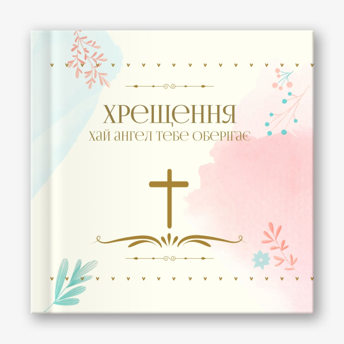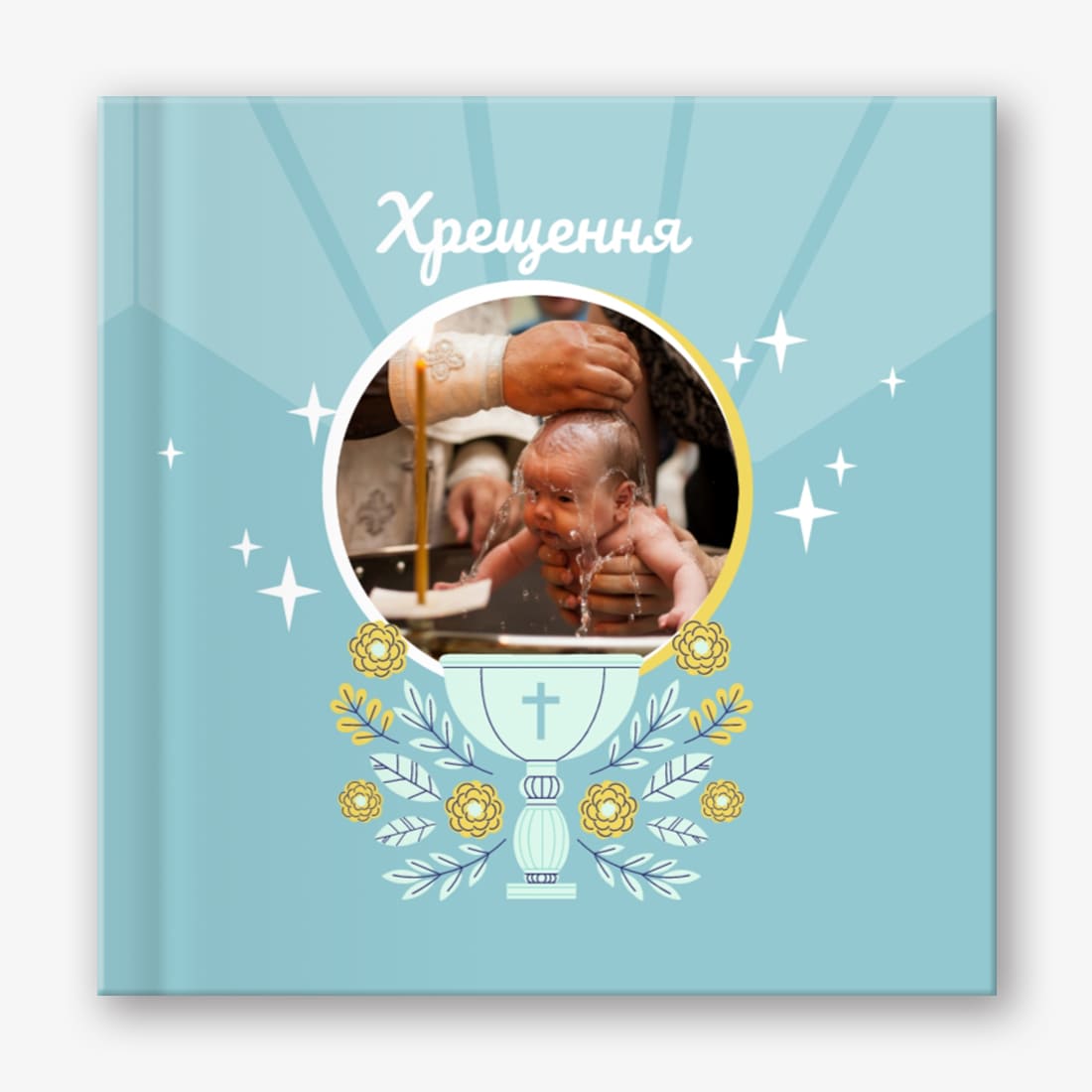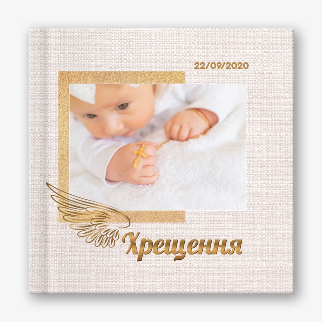 Шаблон фотокниги 'Таїнство Хрещення' від Поліграфіки — ніжний дизайн для пам’ятного альбому. Редагуй онлайн, додавай фото й текст. Доставка по Україні!