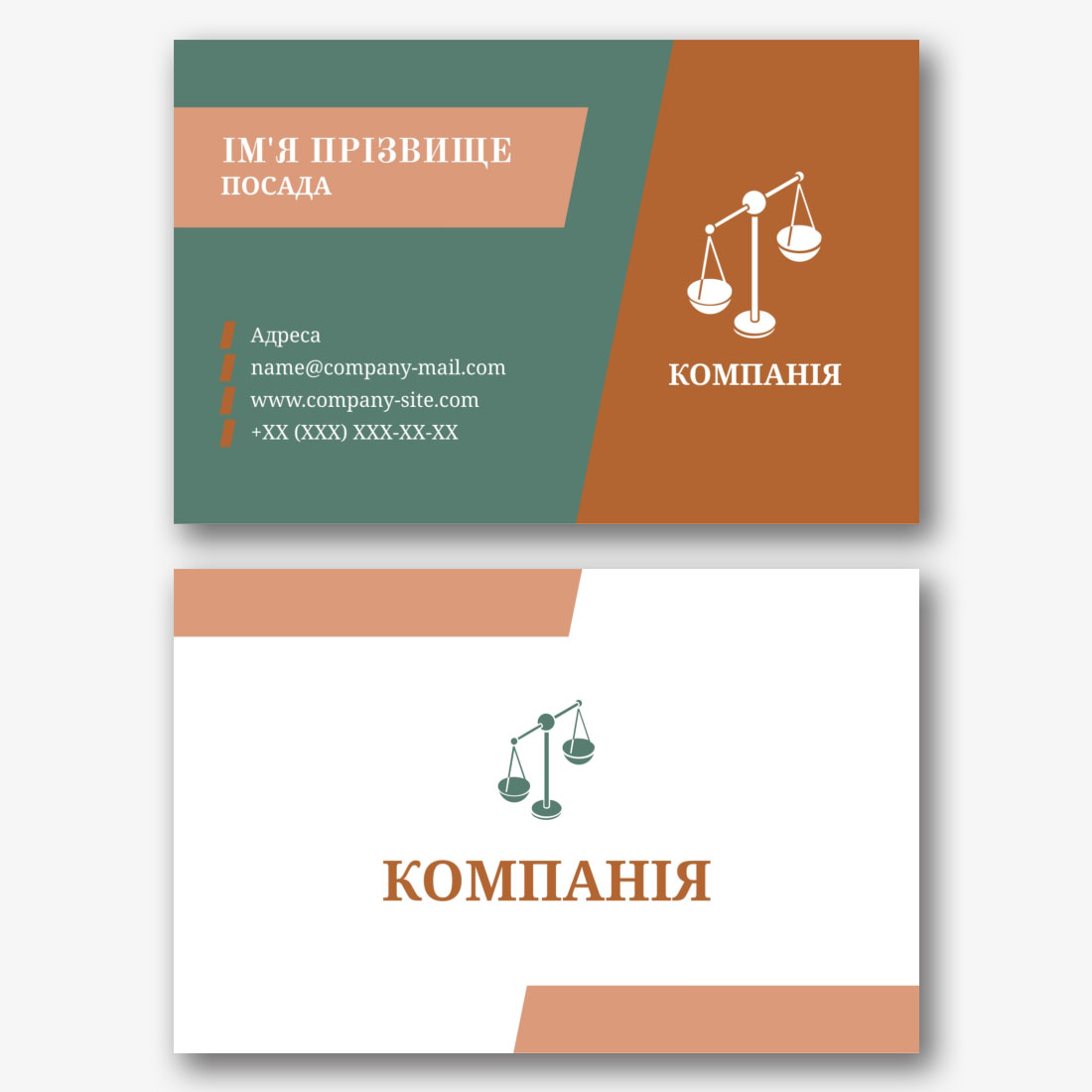 Безкоштовний шаблон візитки юриста, адвоката, адвокатського бюро, юридичної фірми. Створіть макет своїми руками у конструкторі візиток.