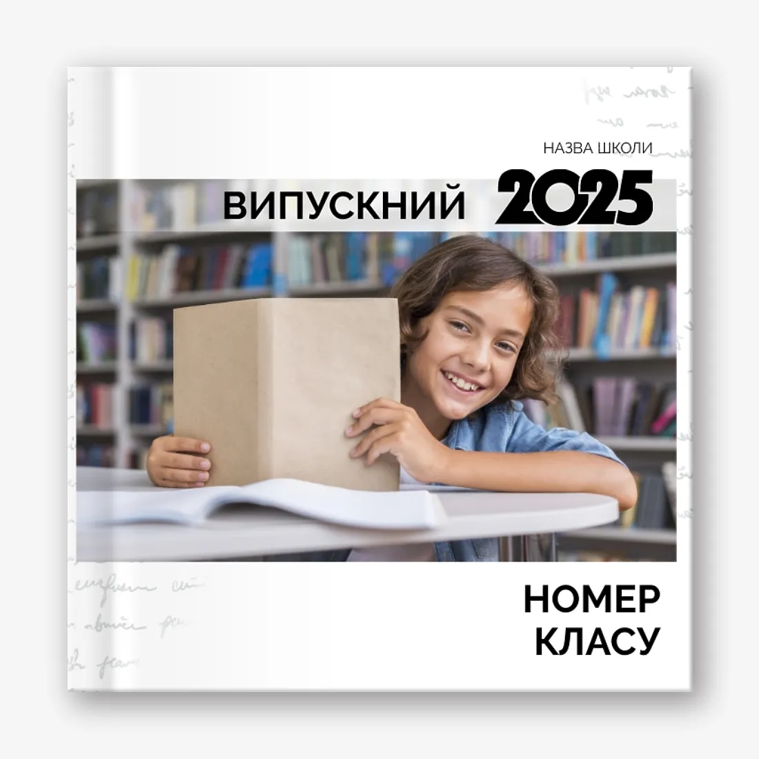 Безкоштовний шаблон класичної фотокниги випускників середньої школи. Легко оформіть свій макет у онлайн-конструкторі та збережіть спогади назавжди.