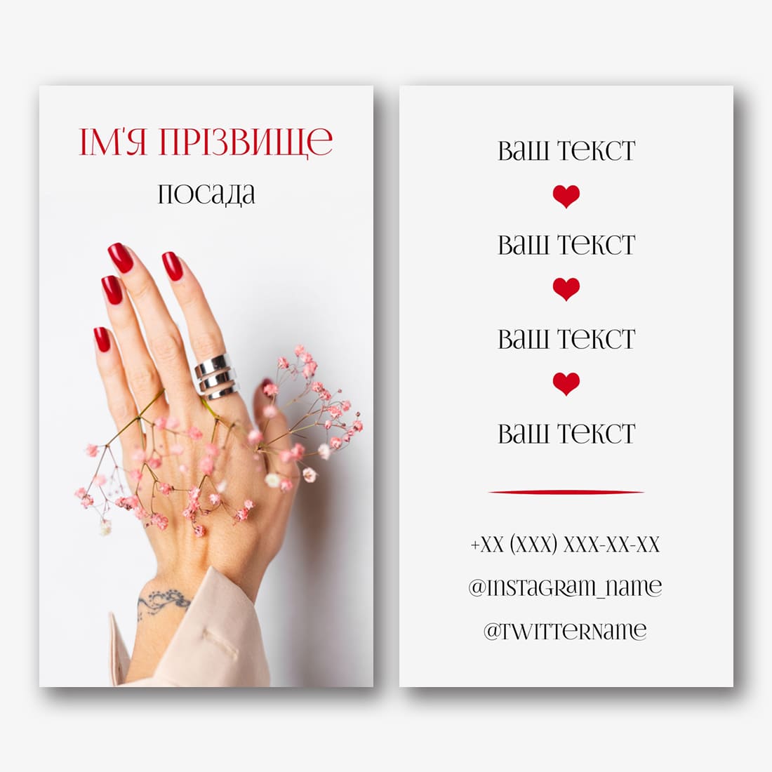 Безкоштовний шаблон візитки для магазину косметики, виробника косметики, візажистів або гримерів. Створіть макет своїми руками у конструкторі візиток.