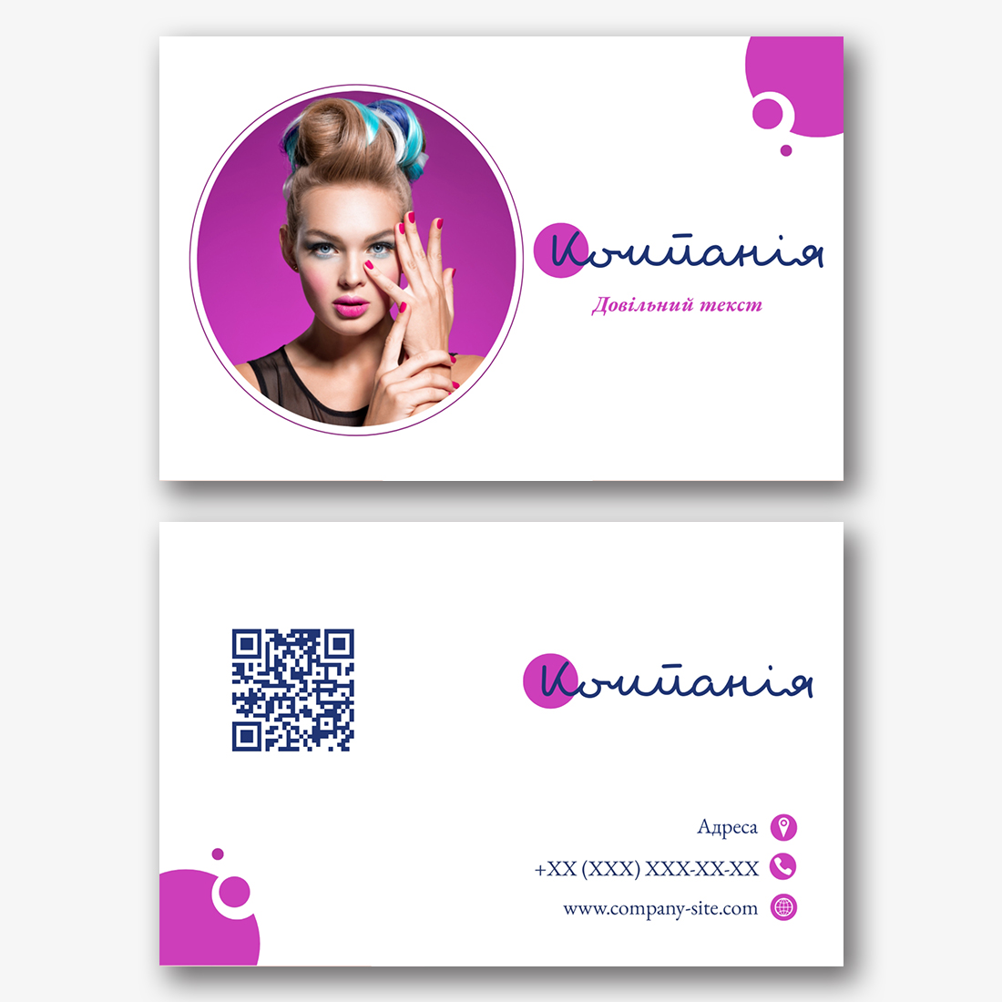 Безкоштовний шаблон візитки колориста, перукаря, стиліста по зачісках. Створіть макет своїми руками у конструкторі візиток.