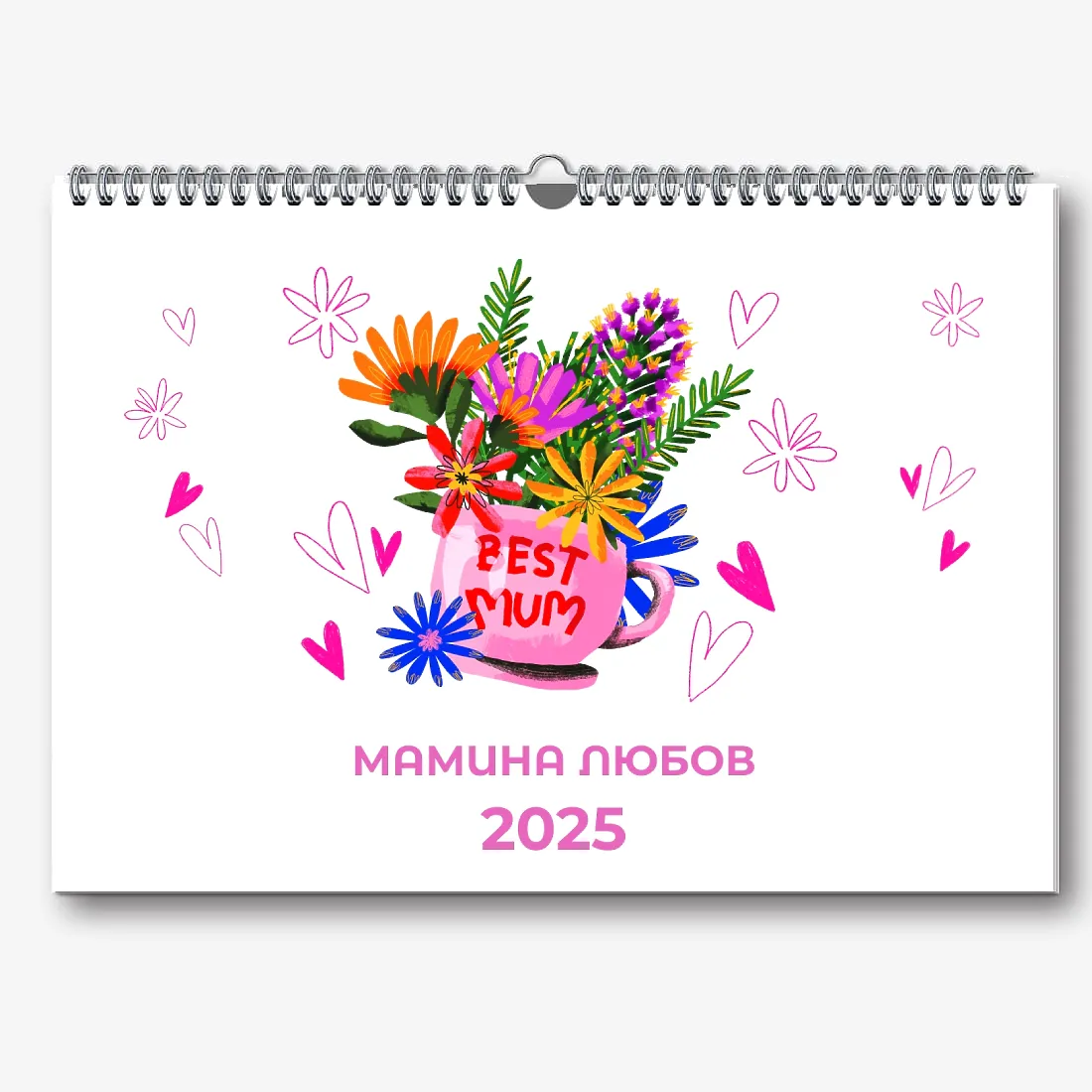 Великий горизонтальний настінний календар з фото сімʼї, який легко персоналізується в онлайн-конструкторі.