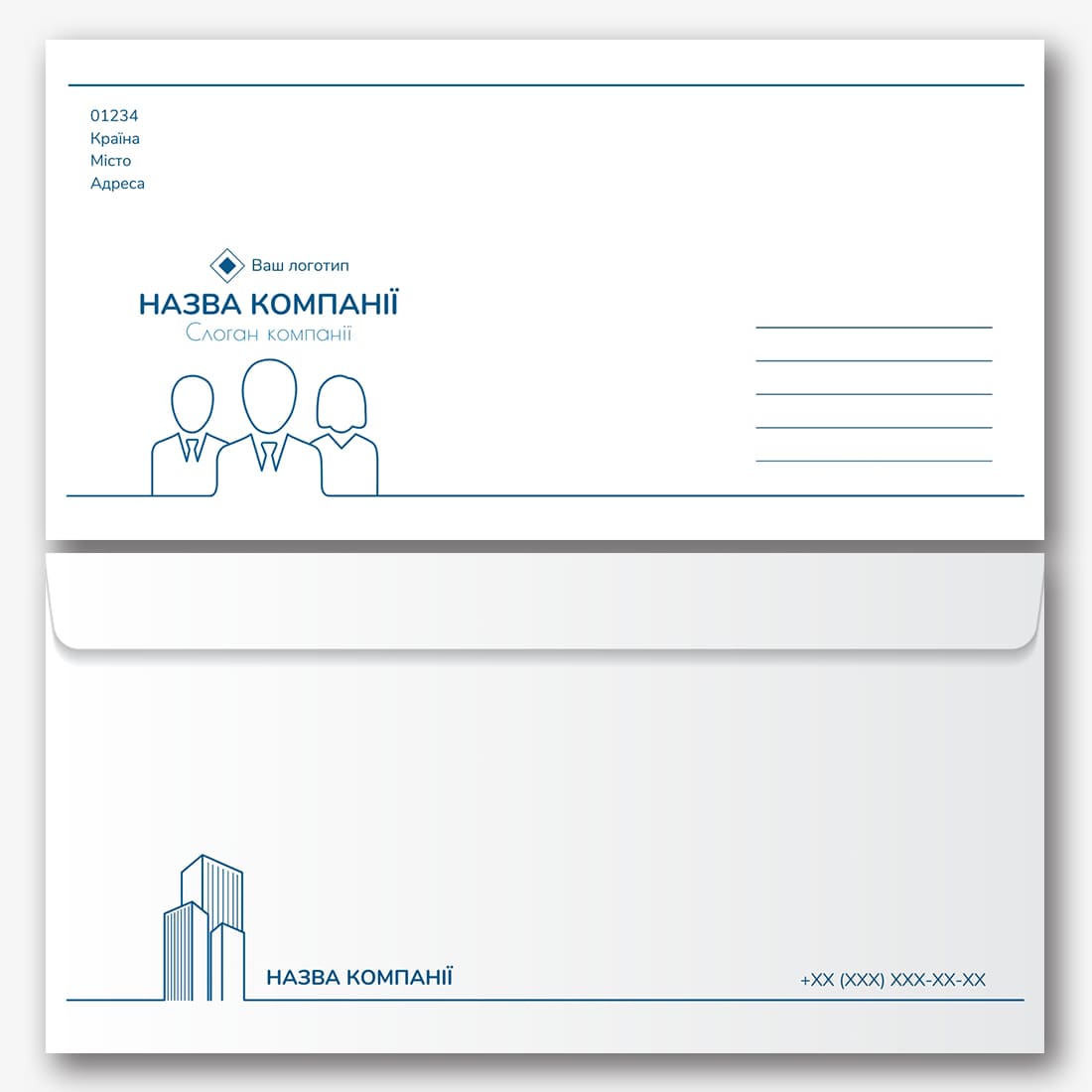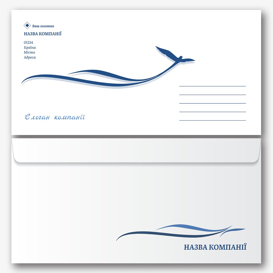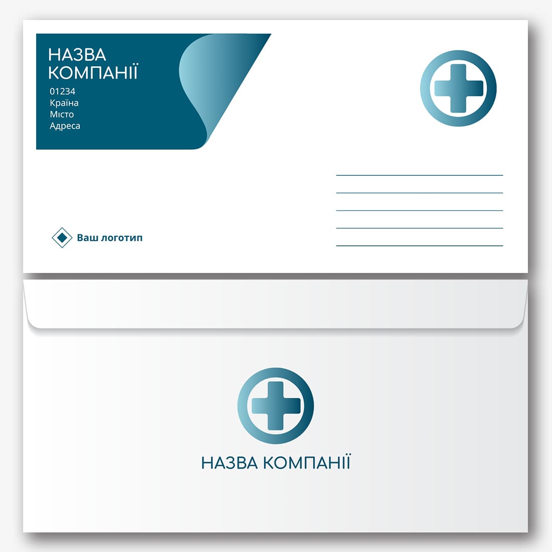 Безкоштовний шаблон фірмового конверту з логотипом для різних компаній та організацій. Створіть макет своїми руками в онлайн-конструкторі конвертів.