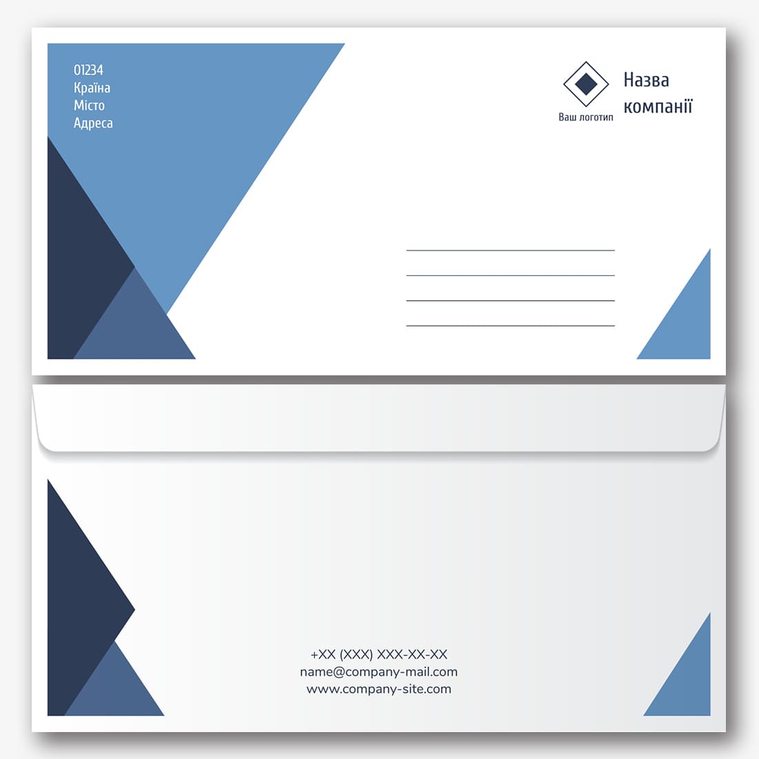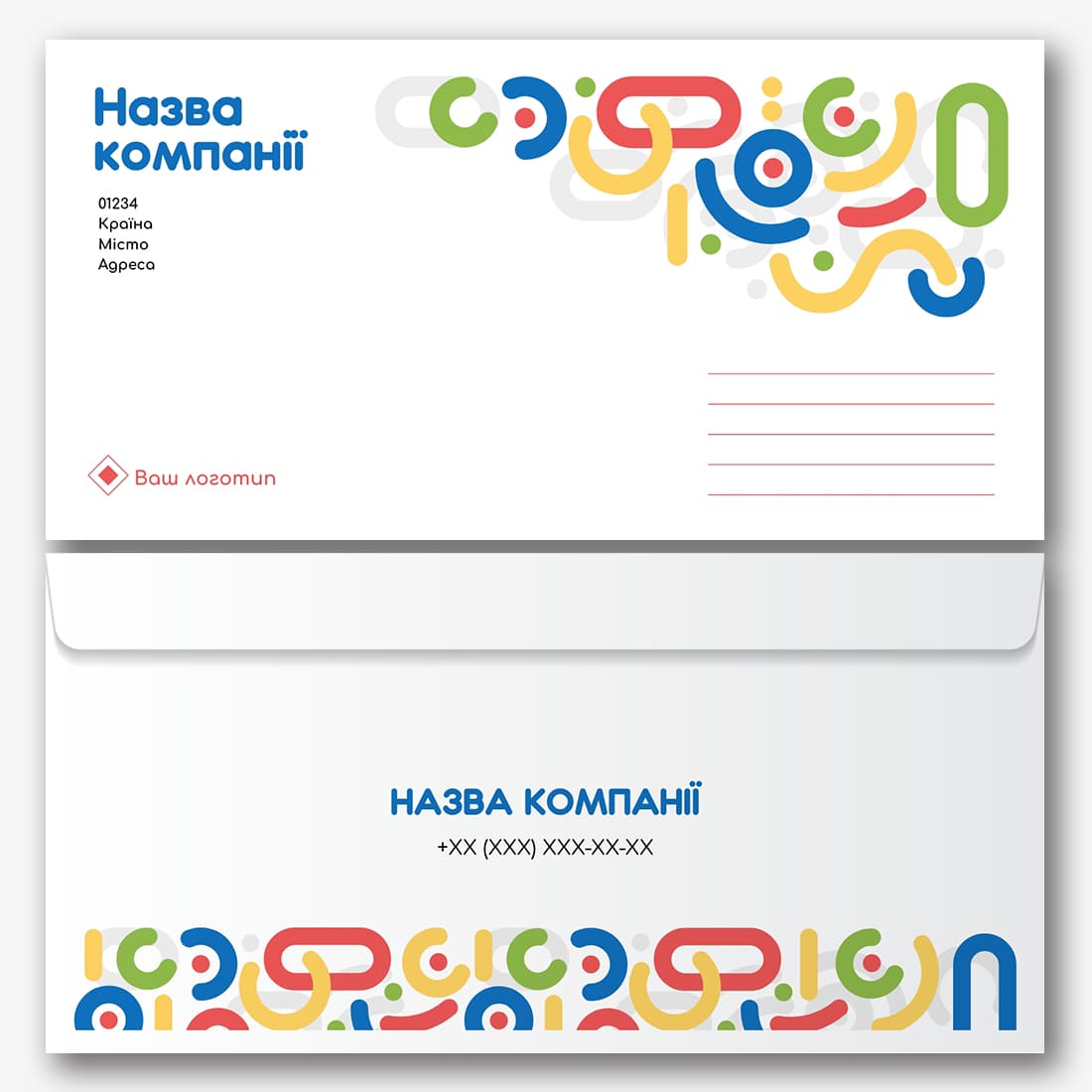 Безкоштовний шаблон фірмового конверту з логотипом для різних компаній та організацій. Створіть макет своїми руками в онлайн-конструкторі конвертів.