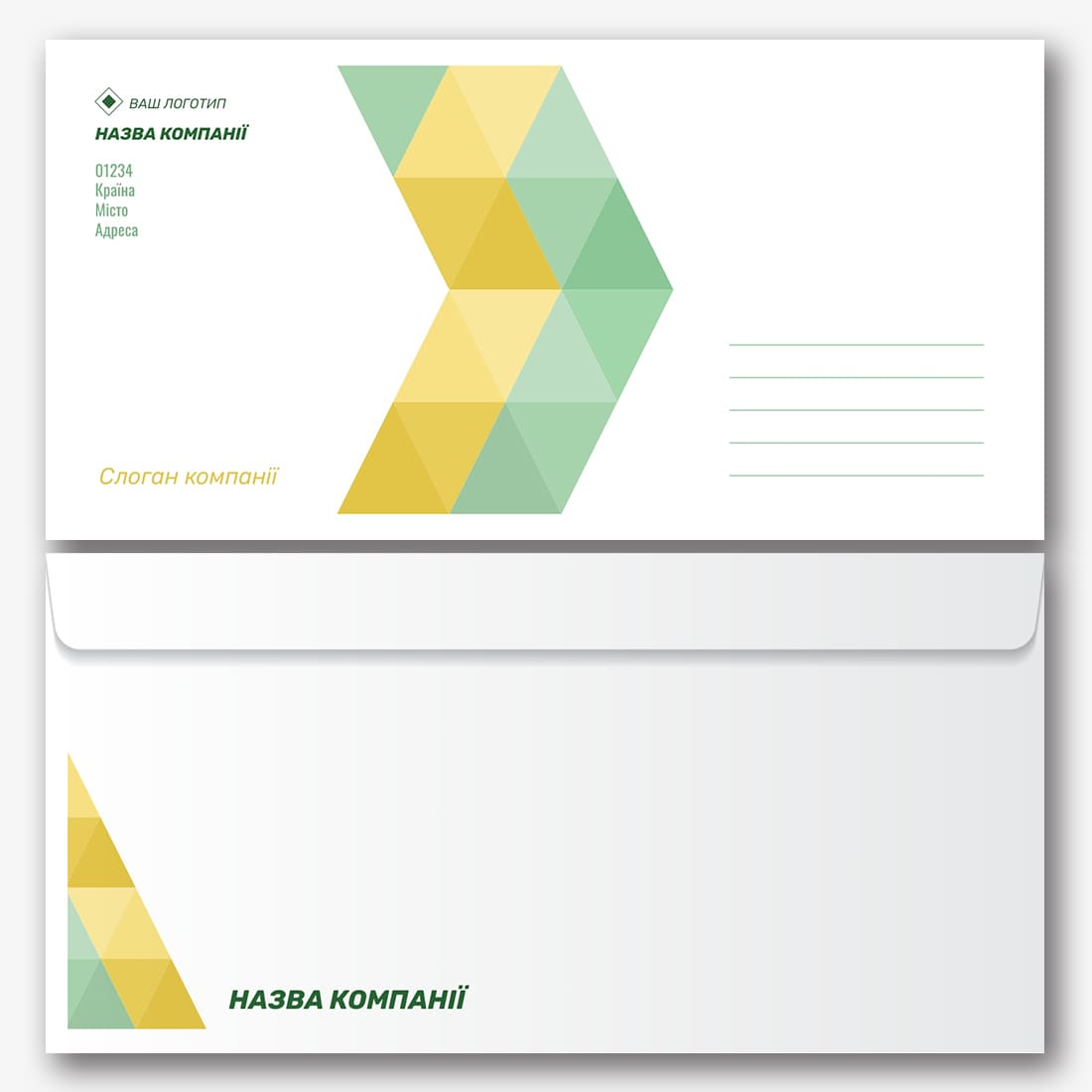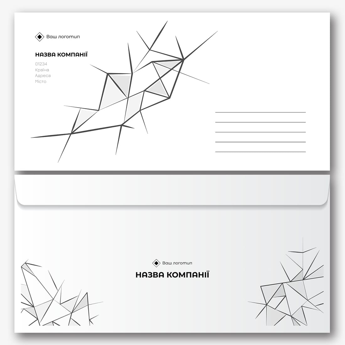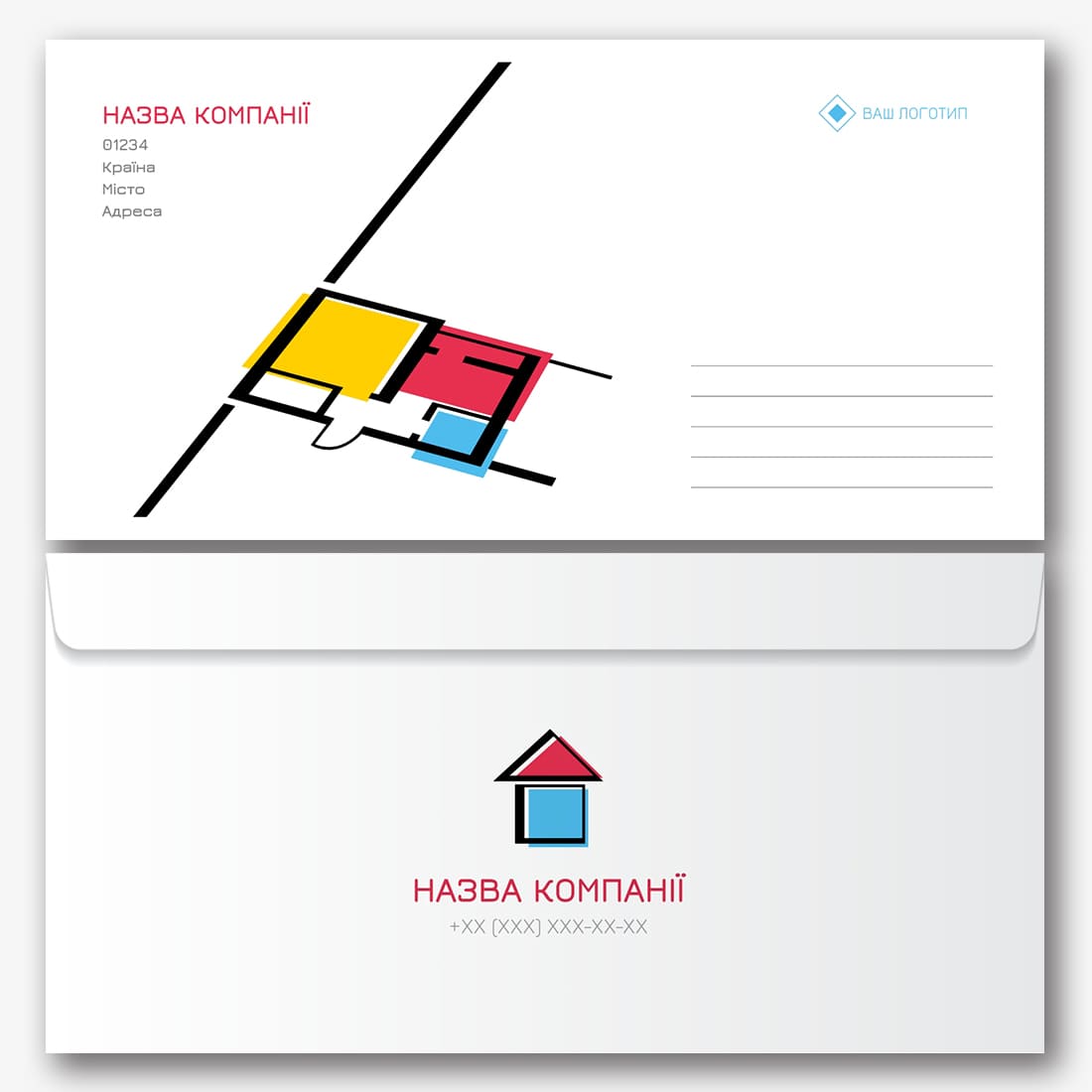 Безкоштовний шаблон фірмового конверту з логотипом для різних компаній та організацій. Створіть макет своїми руками в онлайн-конструкторі конвертів.