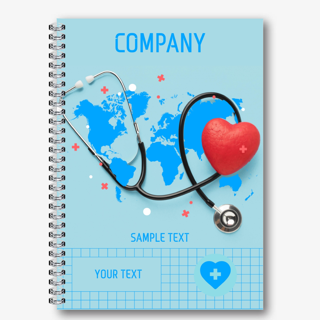 Безкоштовний шаблон блокнота онлайн для реклами лабораторного центру. Створіть макет своїми руками в конструкторі блокнотів.