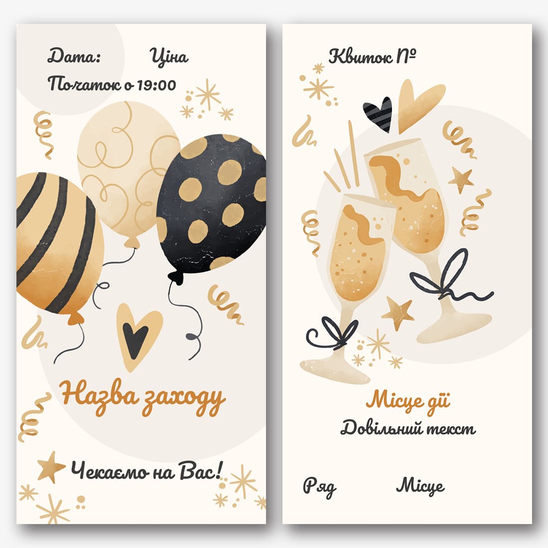 Безкоштовний шаблон квитка в зоопарк. Створіть макет квитка своїми руками в онлайн-конструкторі квитків для культурних заходів.