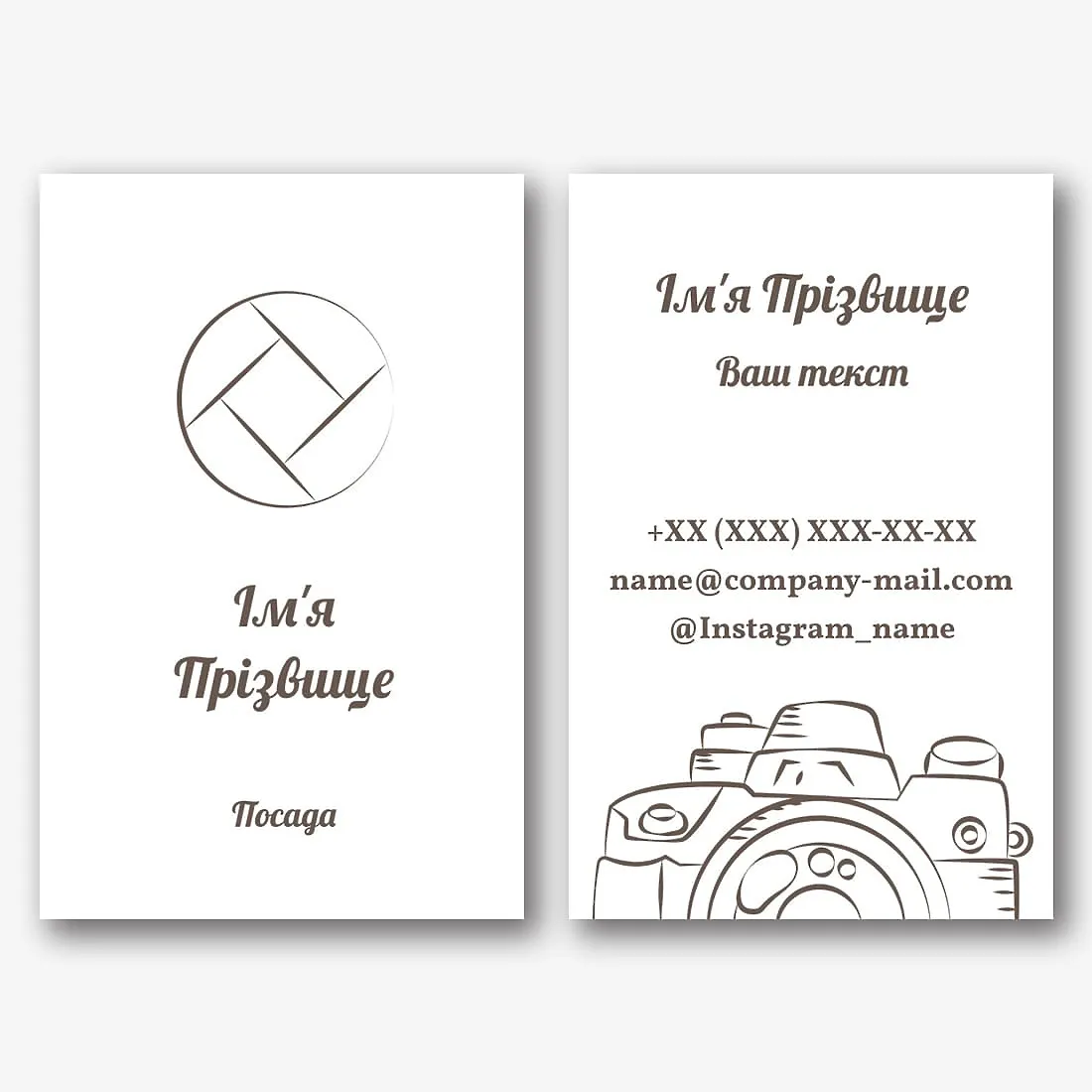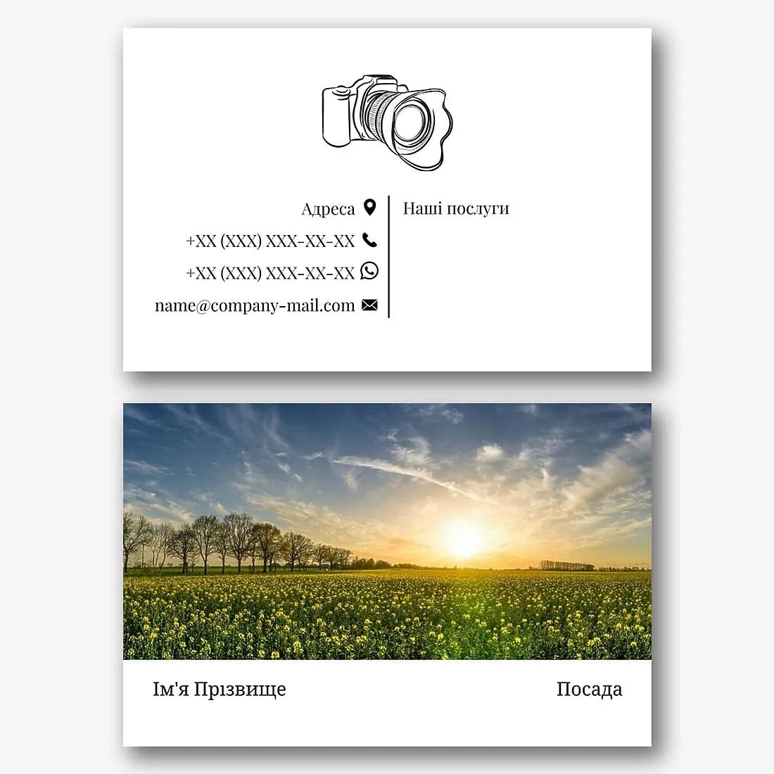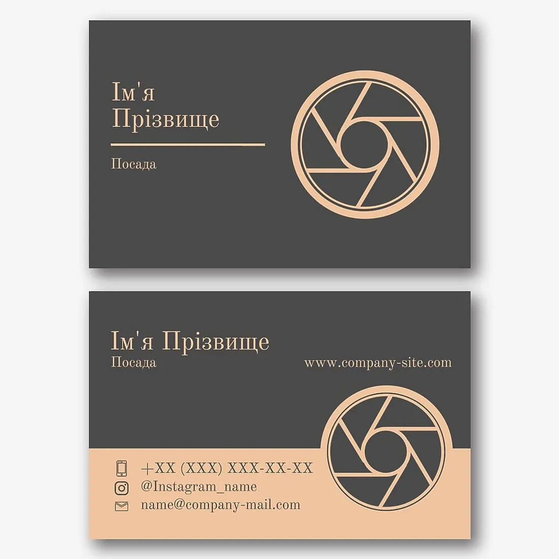 Безкоштовний шаблон візитки фотографа або фотошколи. Створіть макет своїми руками у конструкторі візиток.