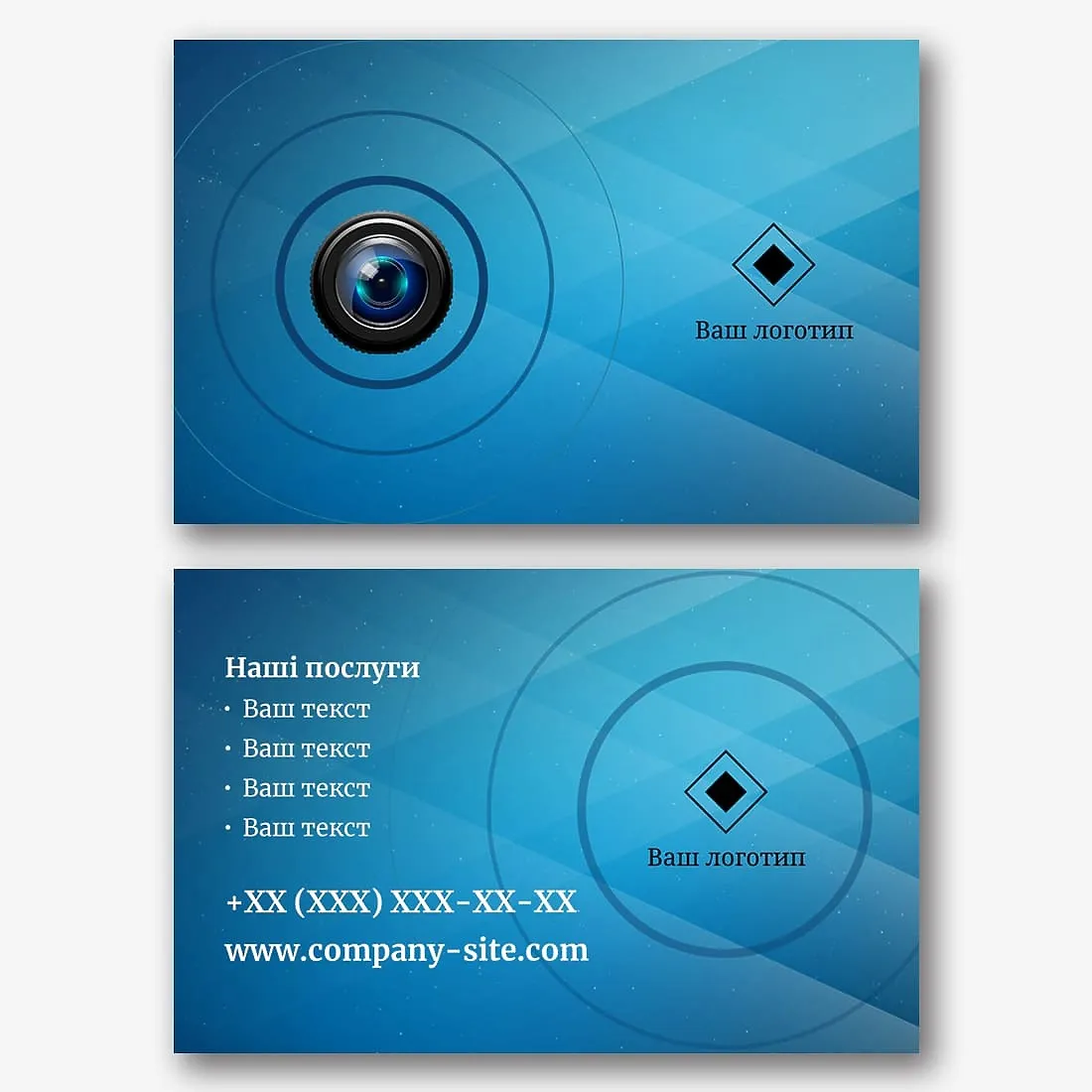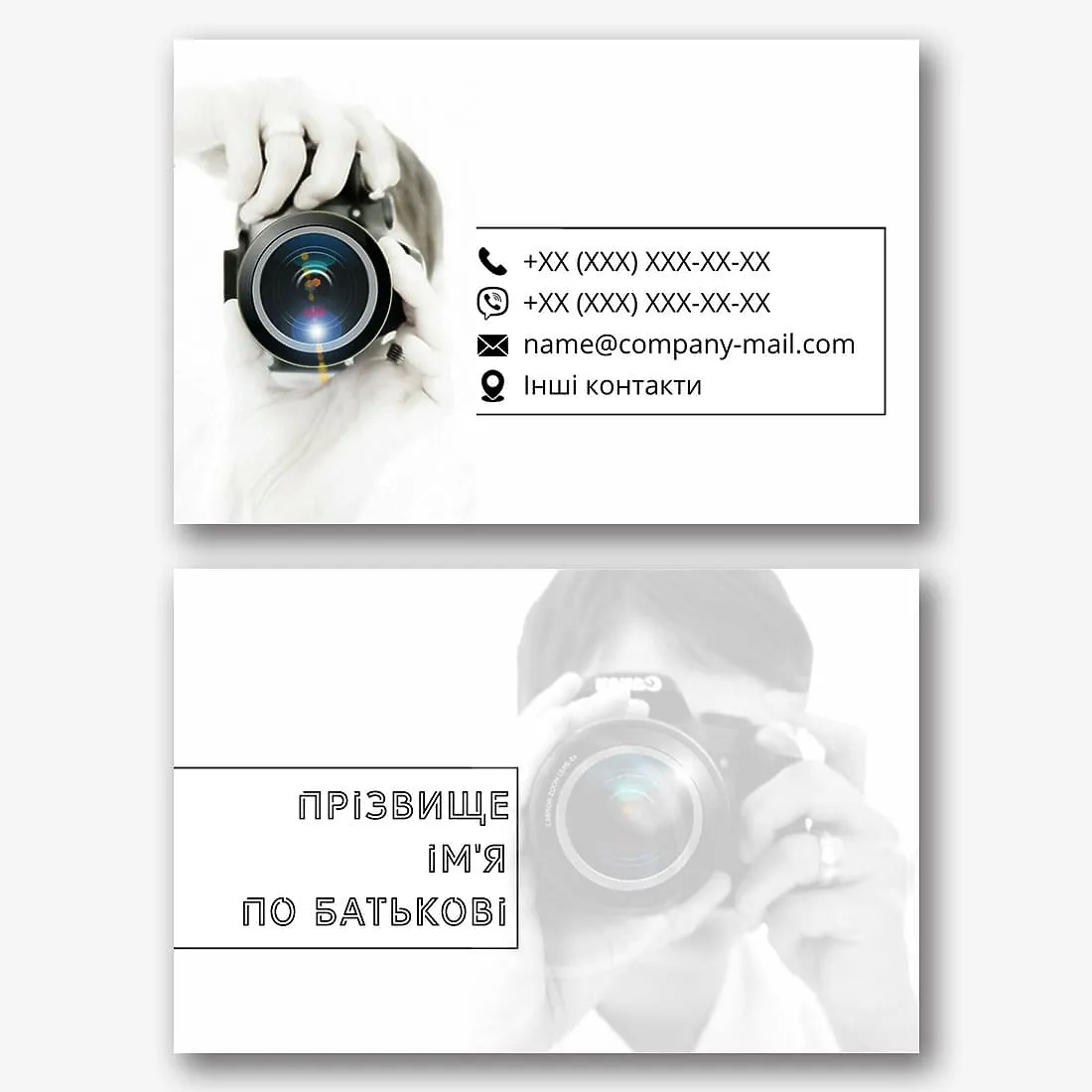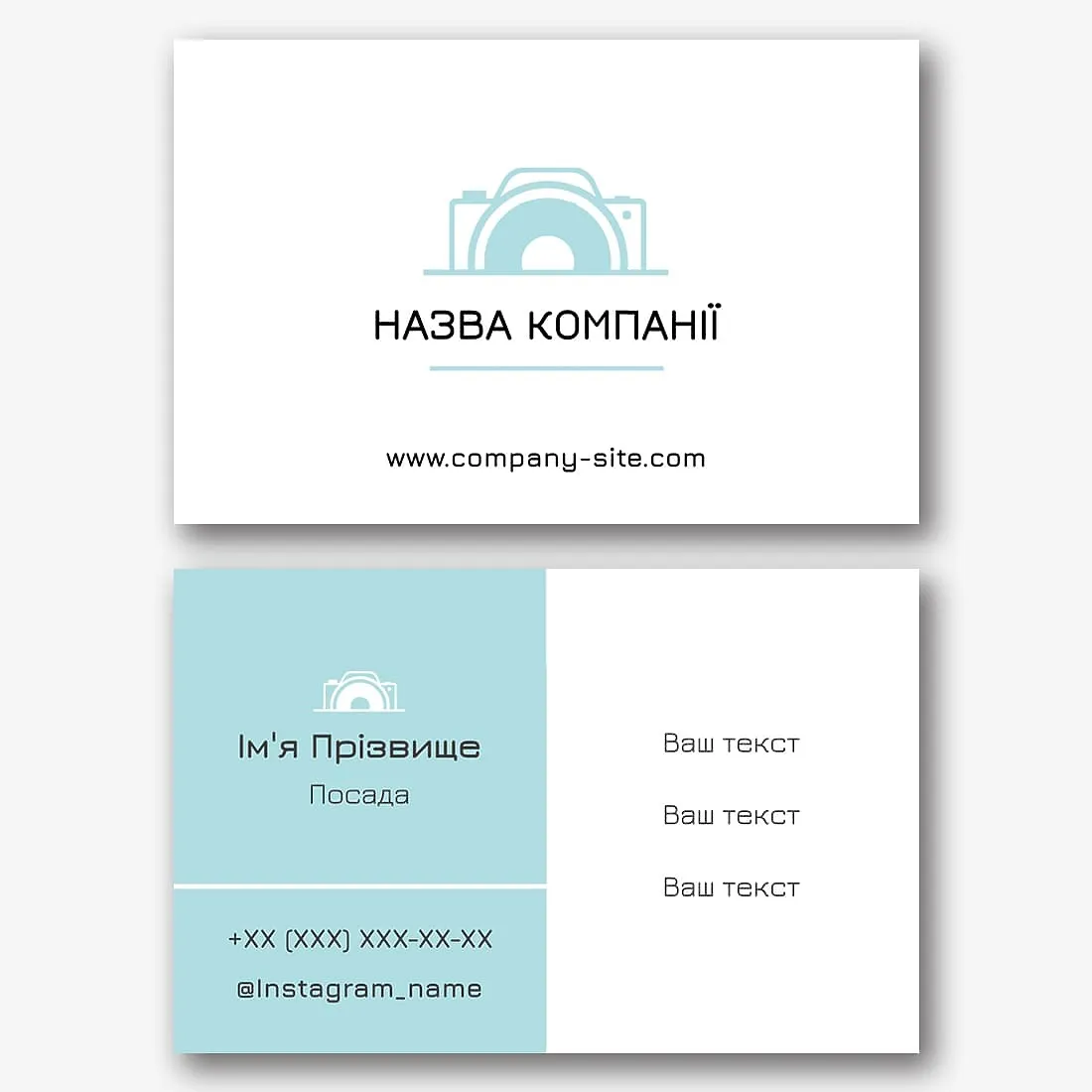 Безкоштовний шаблон візитки фотографа або фотошколи. Створіть макет своїми руками у конструкторі візиток.