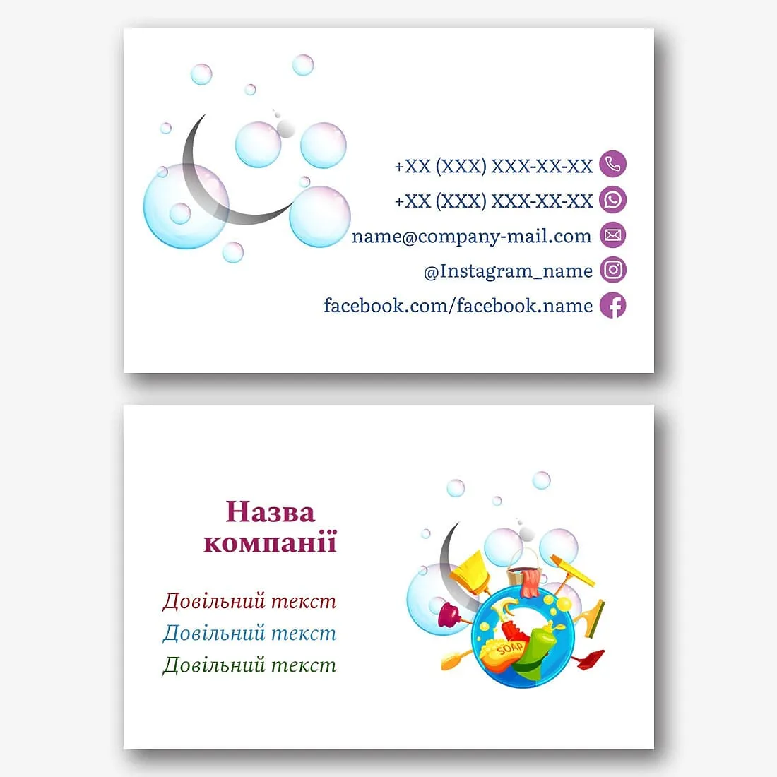 Безкоштовний шаблон візитки клінінгу, клінінгової компанії. Створіть макет своїми руками у конструкторі візиток.