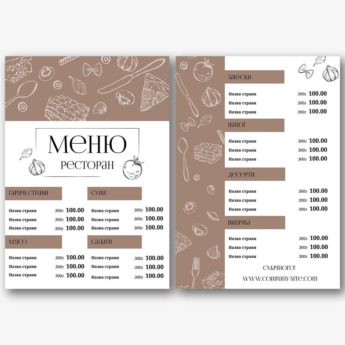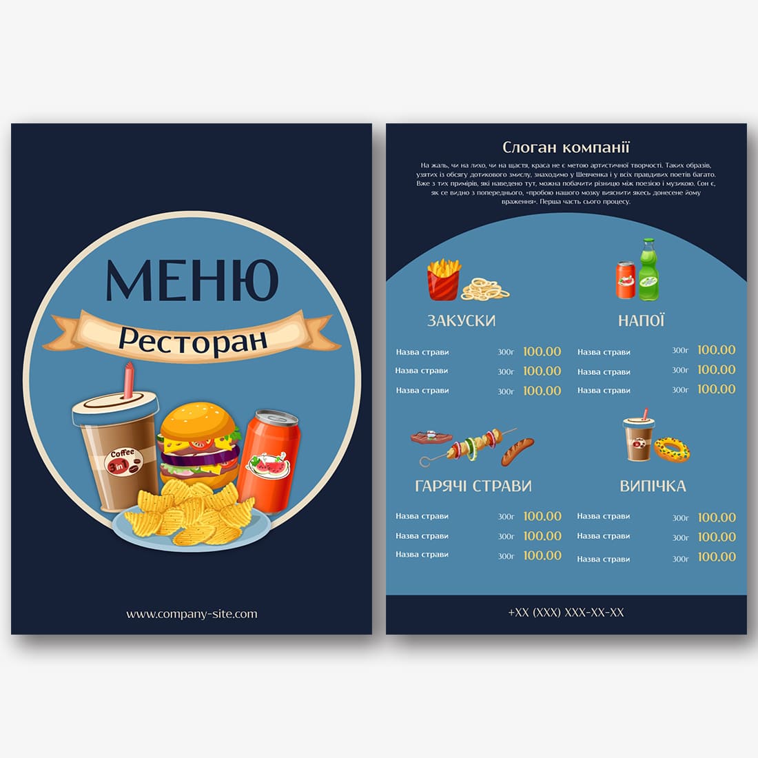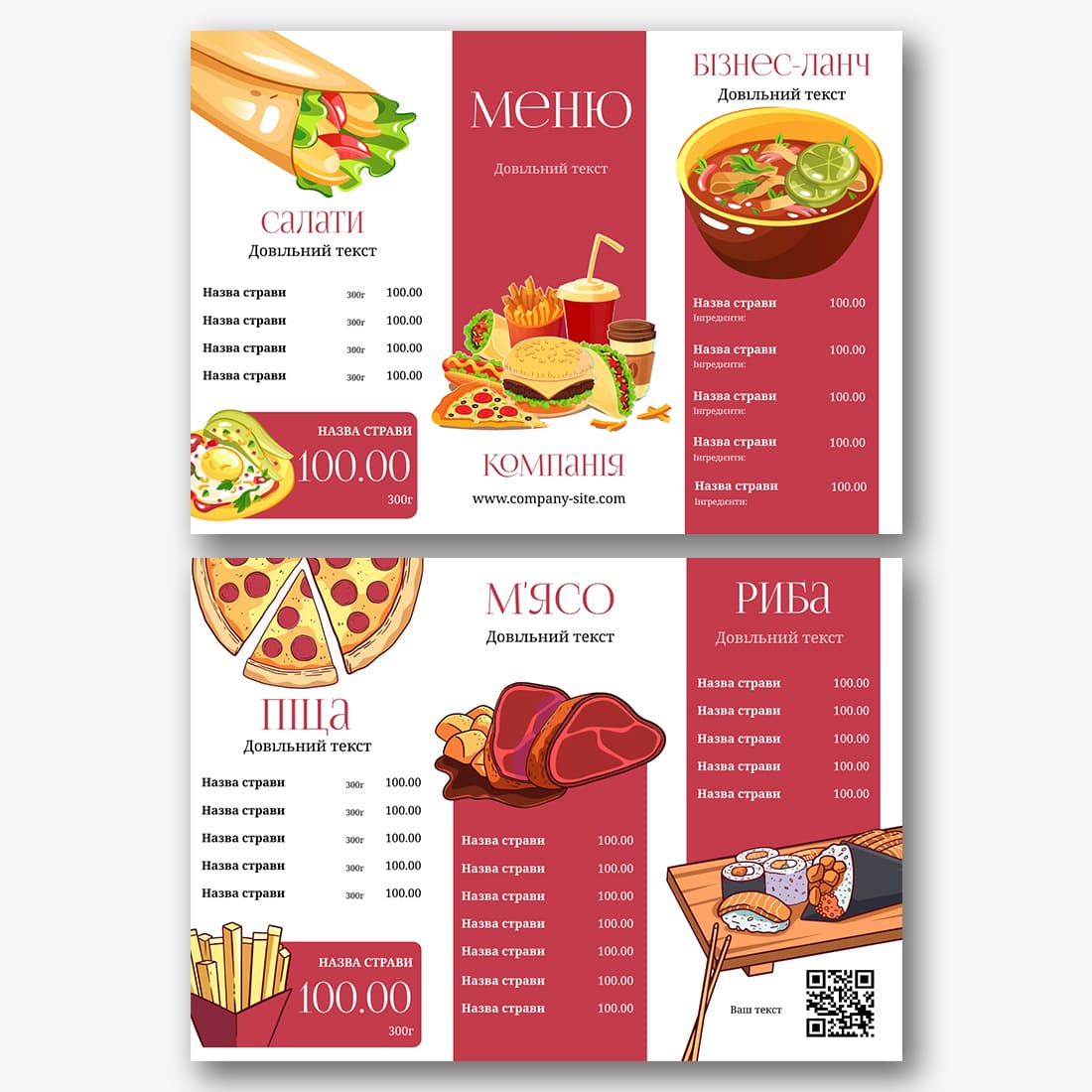 Безкоштовний шаблон меню для ресторану, піцерії. Створіть макет своїми руками в онлайн-конструкторі меню.