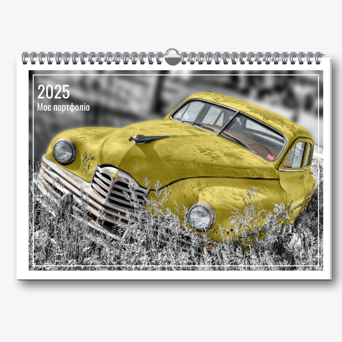 Безкоштовний шаблон настінного рекламного календаря для реклами вашої компанії, товарів або послуг, з можливістю редагування його в конструкторі календарів.