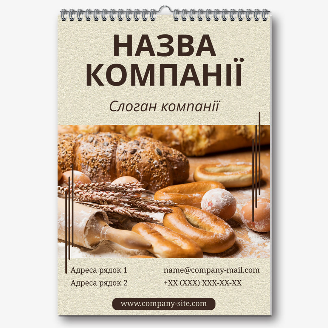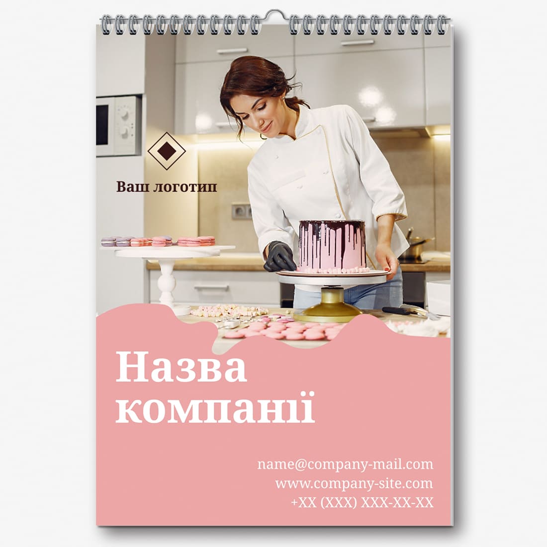 Безкоштовний шаблон настінного календаря для реклами кондитерської, булочної, магазину солодощів. Створіть макет власноруч в онлайн-конструкторі календарів.