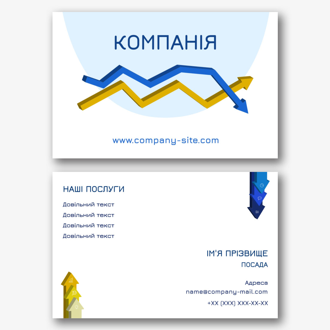 Безкоштовний шаблон візитки інвестиційної компанії, фінансових установ, банків. Створіть макет своїми руками в конструкторі візиток.
