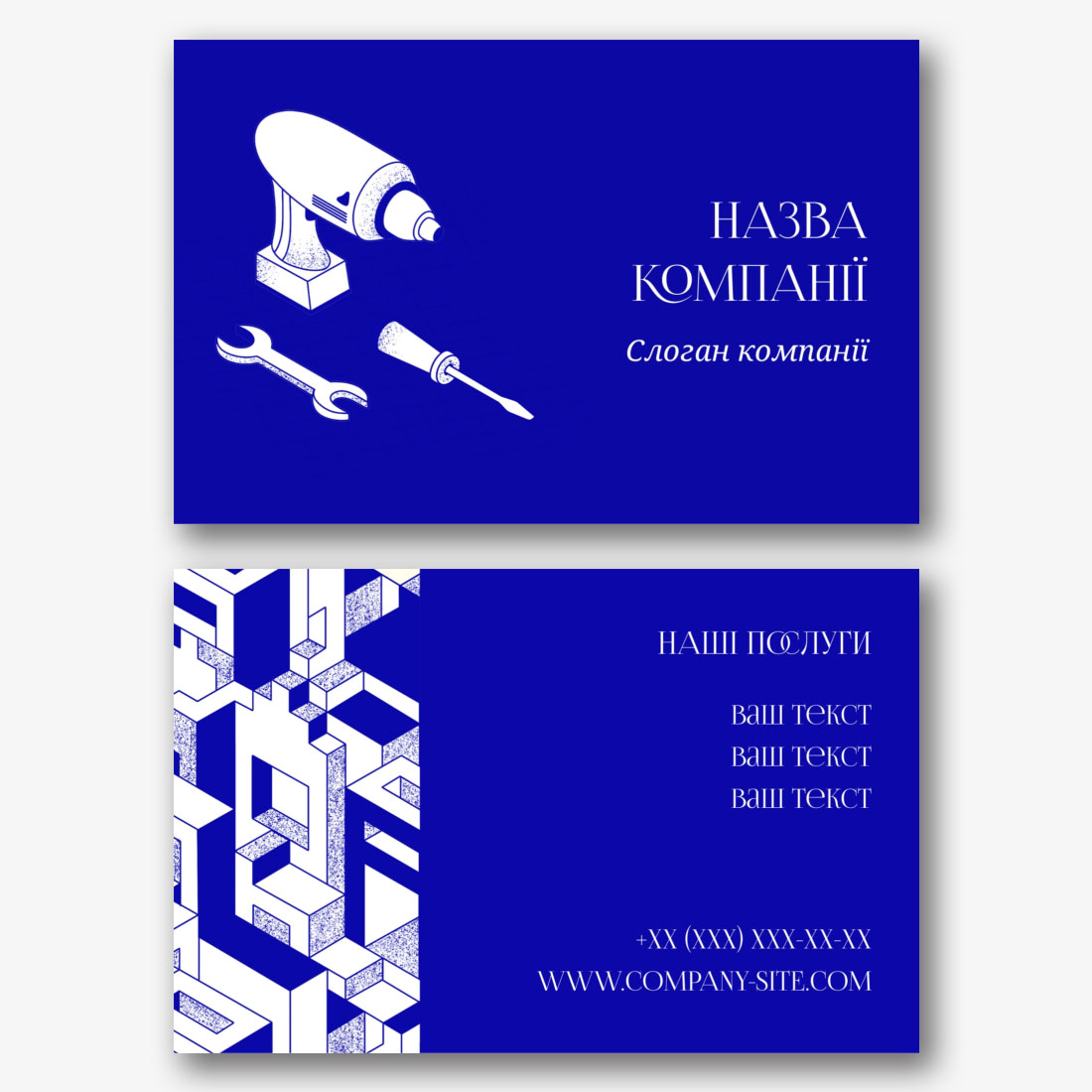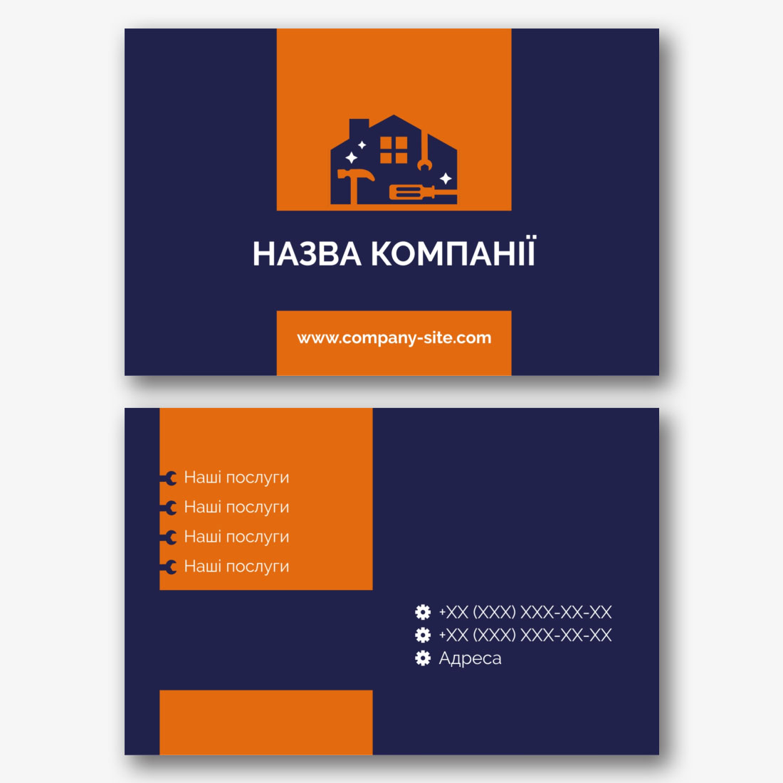Безкоштовний шаблон візитки будівельної компанії, ремонтника, будівельної бригади. Створіть макет своїми руками в конструкторі візиток.