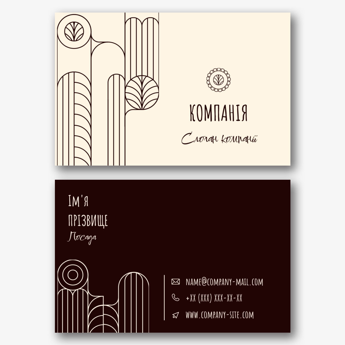Безкоштовний шаблон стильної абстрактної візитки для представників компаній, директорів, менеджерів. Створіть макет візитки своїми руками в онлайн-конструкторі візиток.