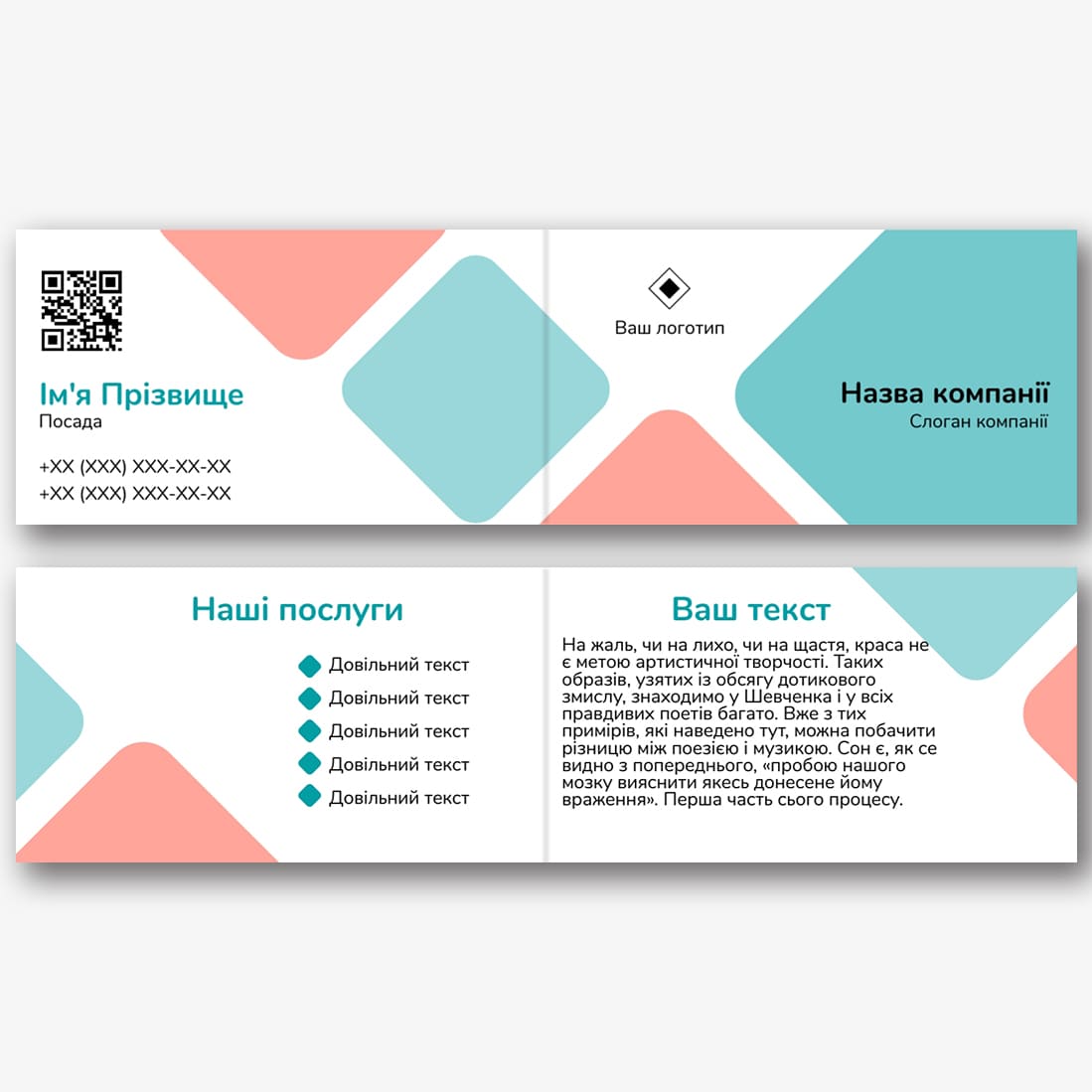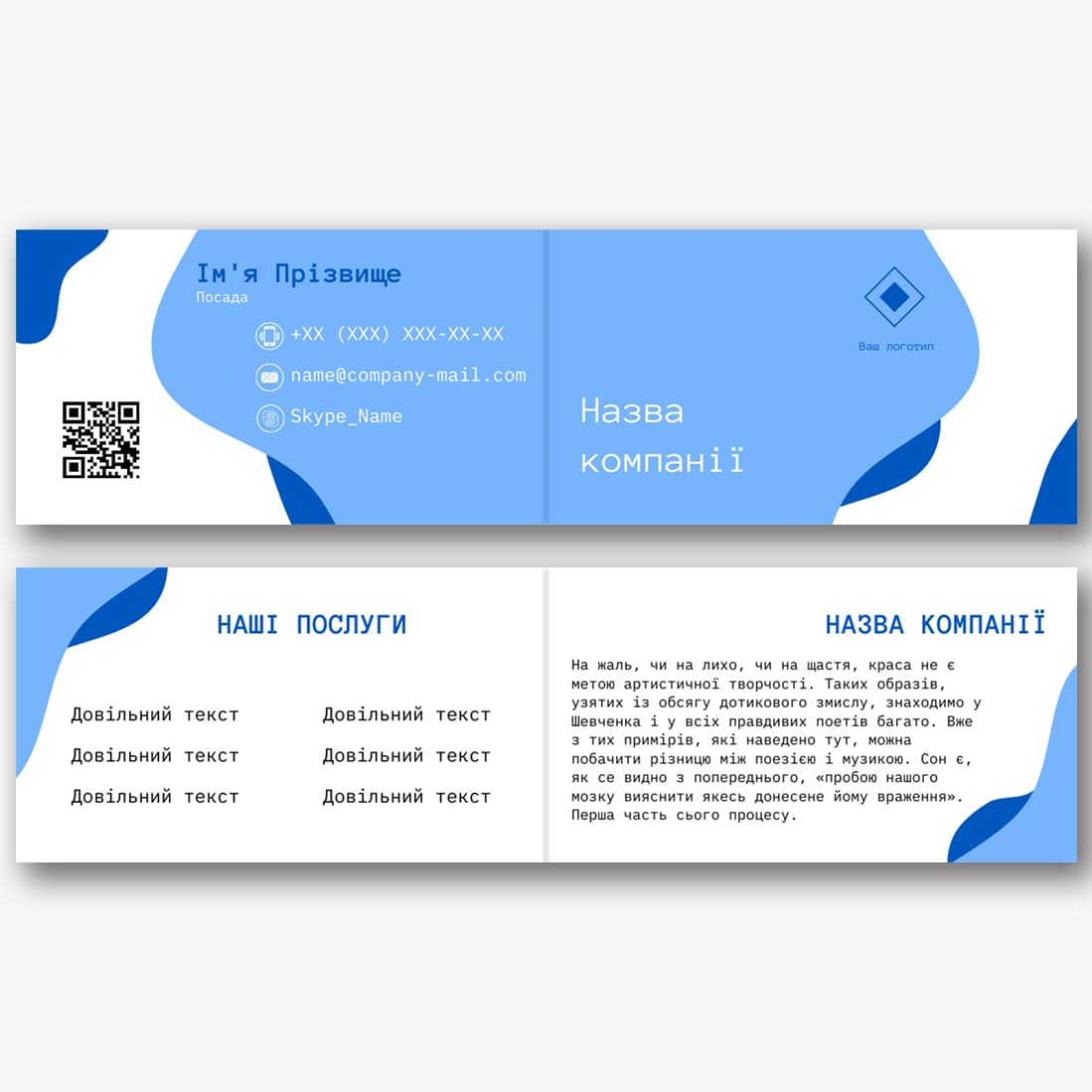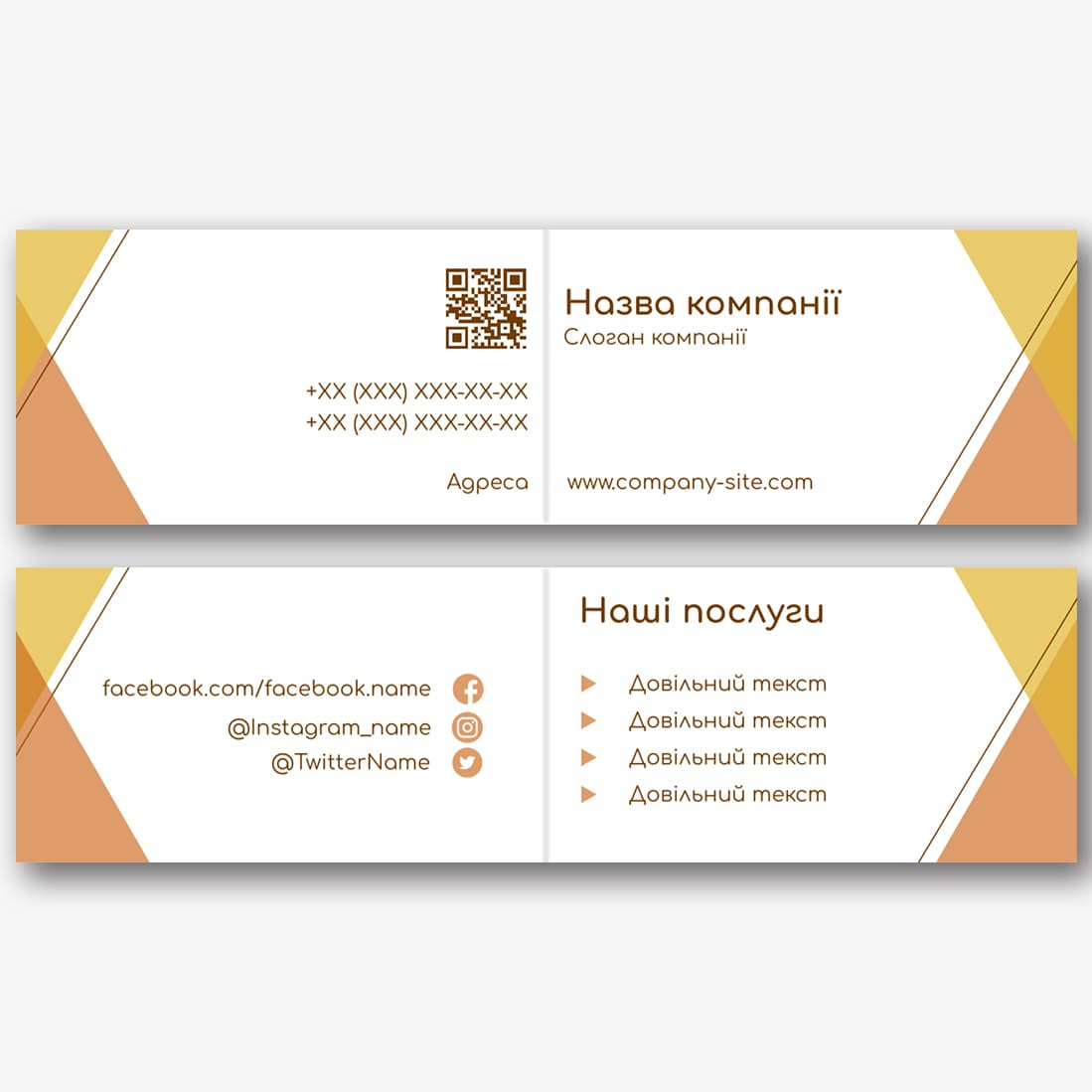 Безкоштовний шаблон корпоративної подвійної візитки з абстрактним фоном для представників компаній, директорів, менеджерів. Створіть макет власноруч у онлайн-конструкторі візиток.