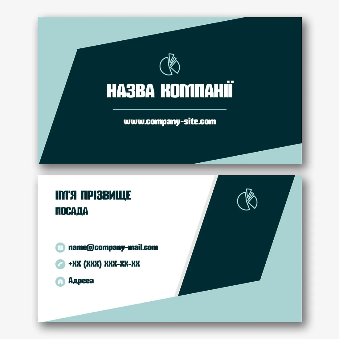 Безкоштовний шаблон візитки з геометричними фігурами для керівників, менеджерів. Створіть макет візитки своїми руками в онлайн-конструкторі візиток.